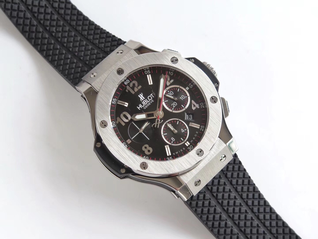 Hublot Big Bang Black 44mm Black Silver Dial Steel Bezel Black Rubber Strap 301.SX.130.RX