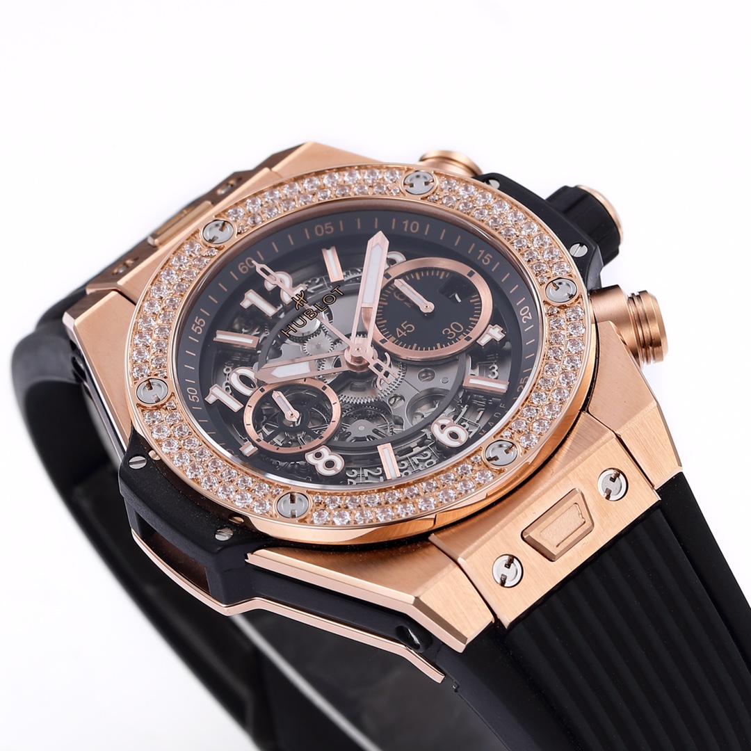| Hublot Big Bang Unico 45mm Dial Rose Gold Diamond Bezel Black Rubber Strap 411.OX.118X.RX.1104 | |