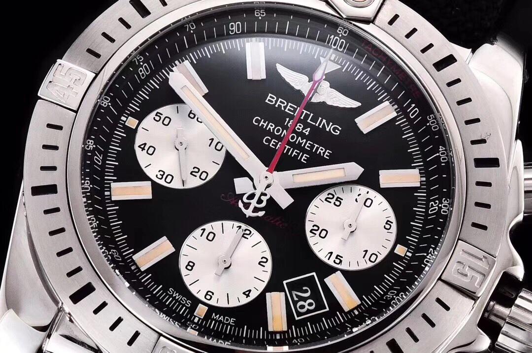 | Breitling Chronomat 44mm Black Dial Steel Bezel Black Fabric Strap AB01154G.BD13.101W.A20D.1 Ace Pilot | |