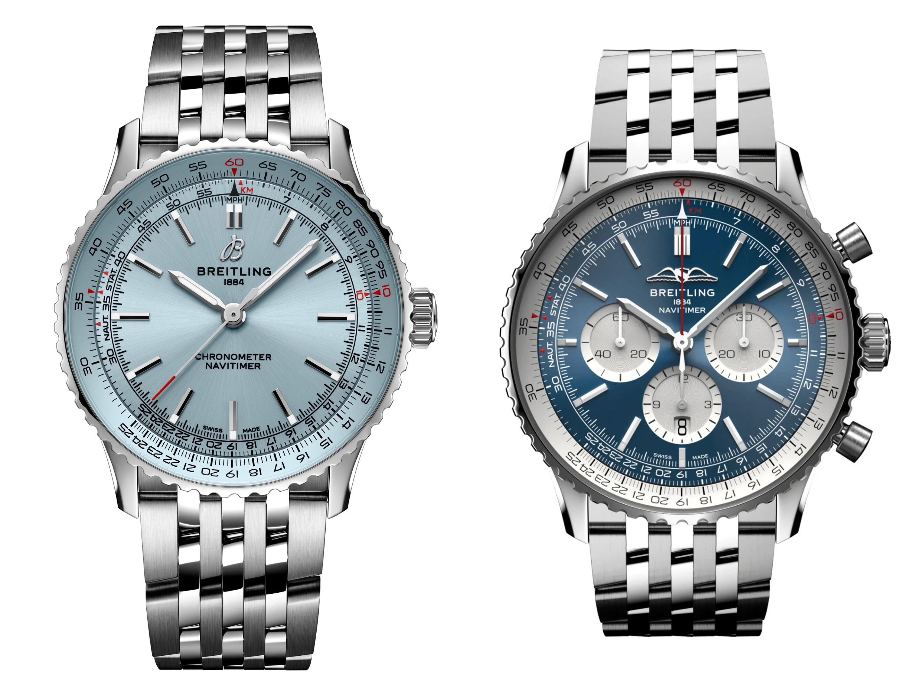Breitling Navitimer Ice Blue 41mm Crystal Watch A17395F41G1A1 and Breitling Navitimer BO1 Blue Dial Watch 46mm: Two combinations