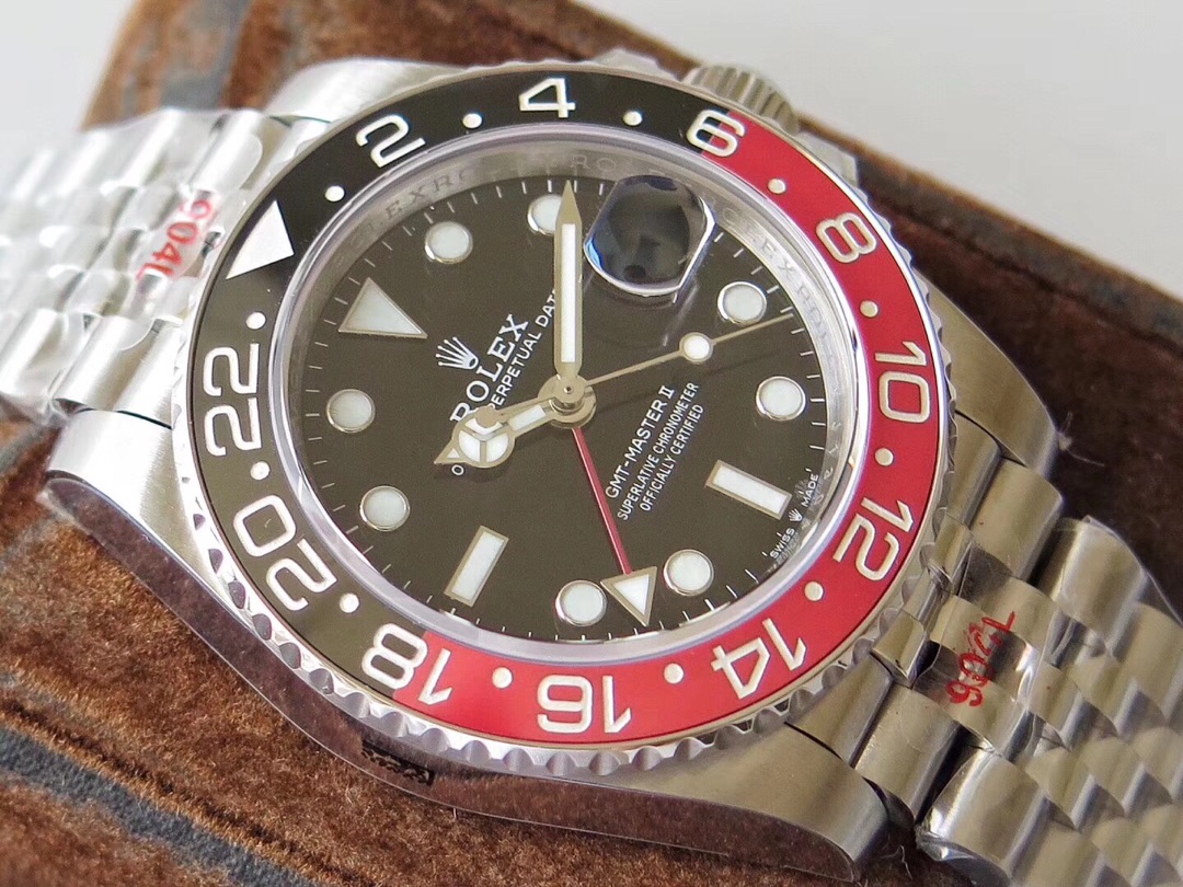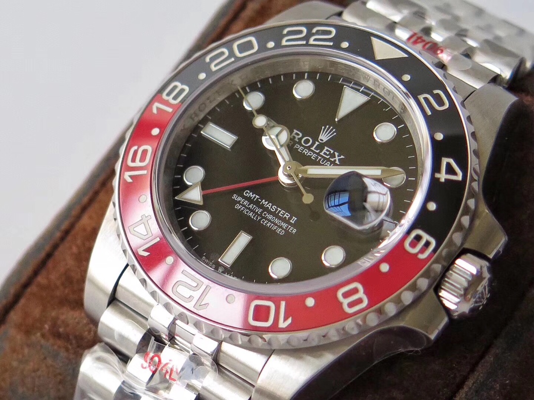 | Rolex GMT-Master ll Coke 40mm Black Dial Black & Red Bezel Steel 167101Coke | |