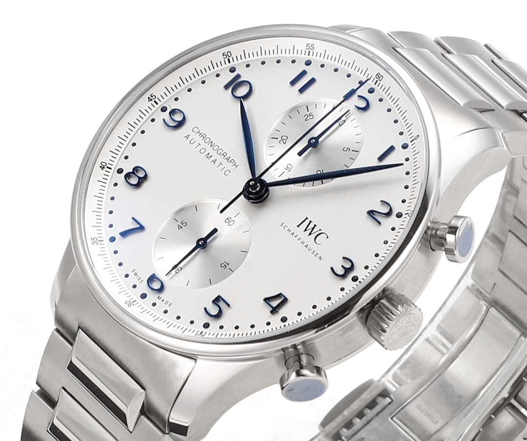 | IWC Portugieser 41mm White Dial Blue Watch Hands Steel Bezel Steel Strap IW371617 | |