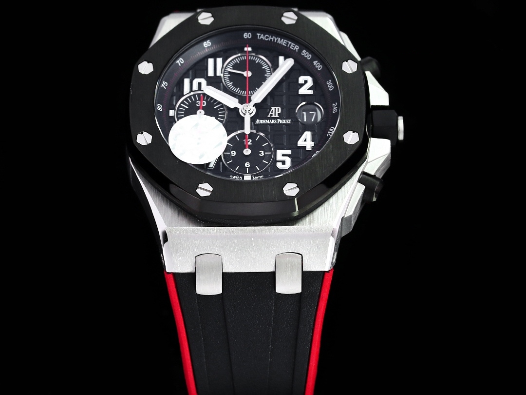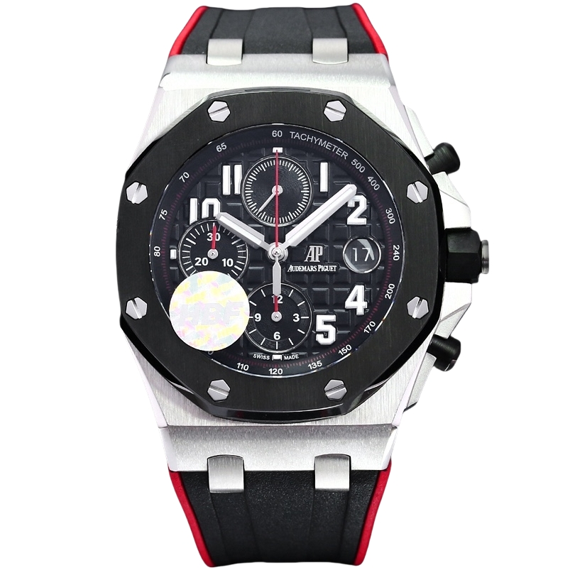 Audemars Piguet Royal Oak Offshore Chronograph 42mm Black Dial Black Steel Bezel Black Red Rubber 26470SO.OO.A002CA.01