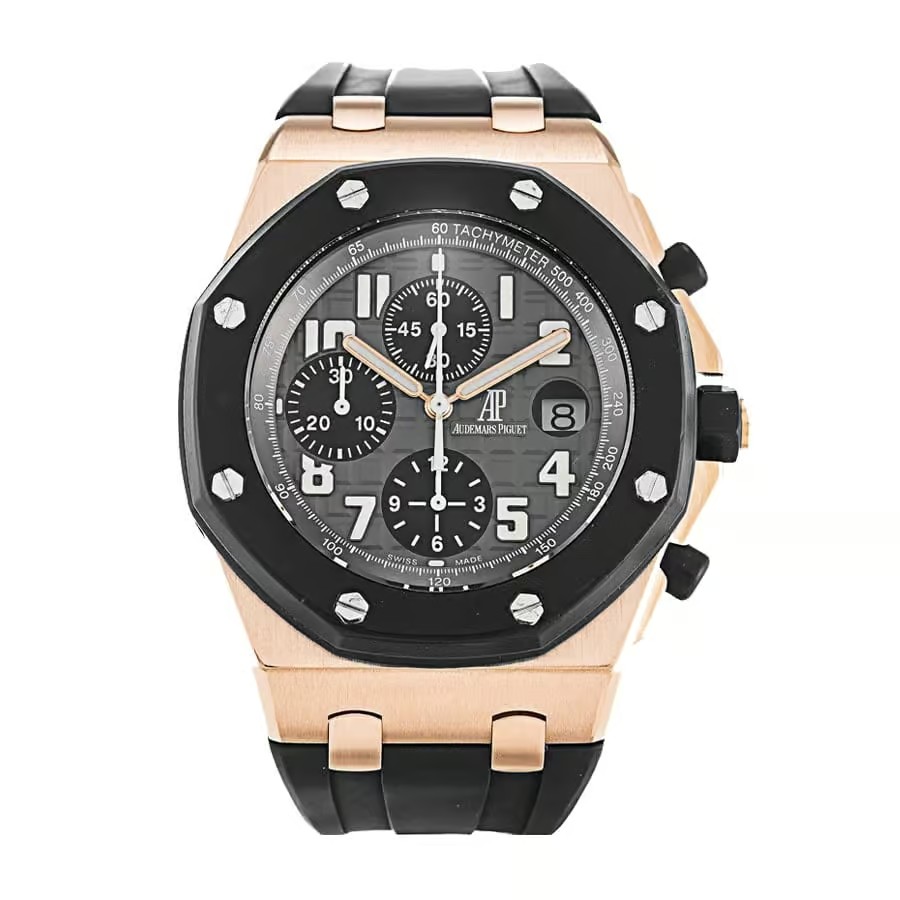 Audemars Piguet Royal Oak Offshore Chronograph 42mm Black Silver Dial Rose Gold Bezel 26470