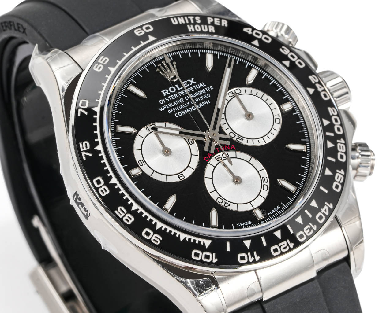 | Rolex Daytona Cosmograph 40mm Dial Black Silver Platinum Black Strap 126519LN-0002 | |