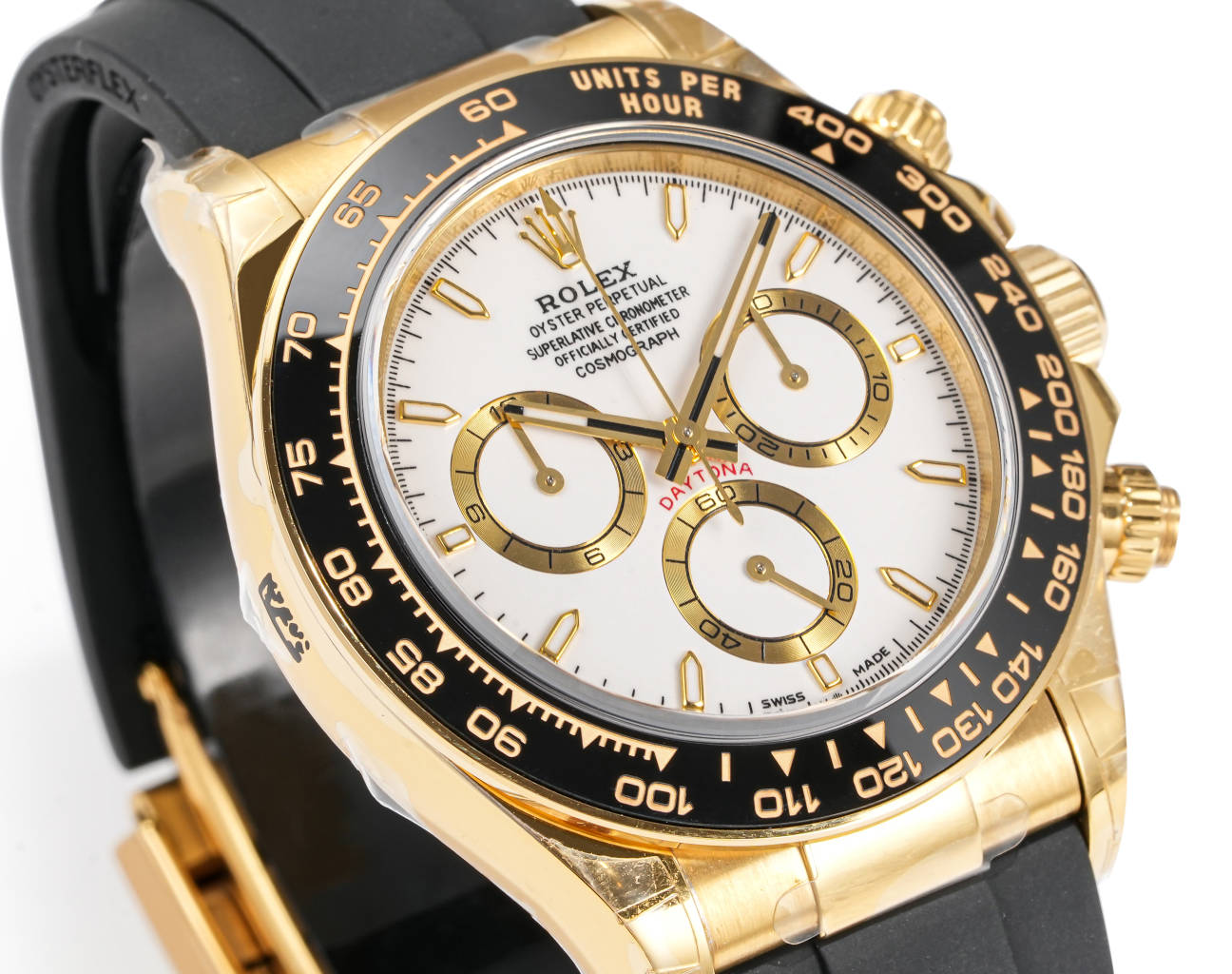 • Rolex Daytona Cosmograph 40mm Dial White Yellow Gold Black Strap 116518-0002