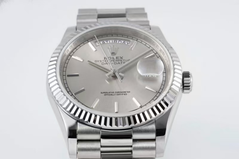 Rolex Day-Date 36mm 40mm Silver Gen Dial Platinum Bezel 228239-0003