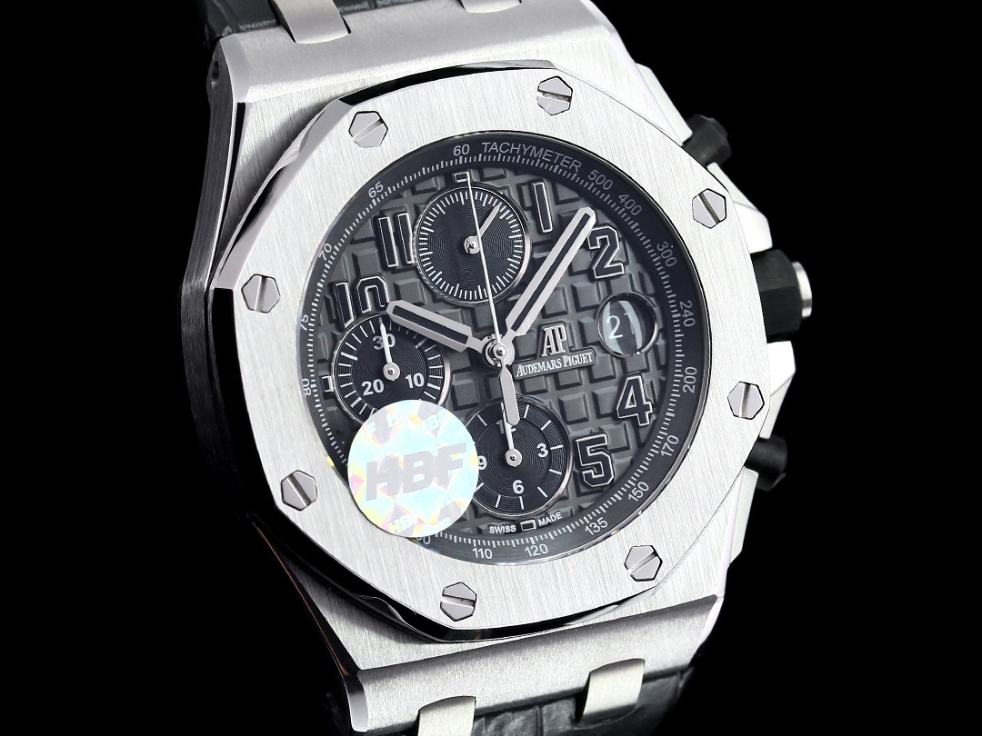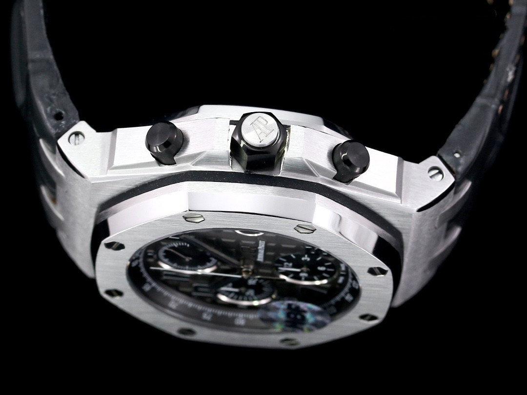 | Audemars Piguet Royal Oak Offshore Chronograph 42mm Black Dial Steel Bezel Black Leather 26470ST.OO.A104CR.01 | |
