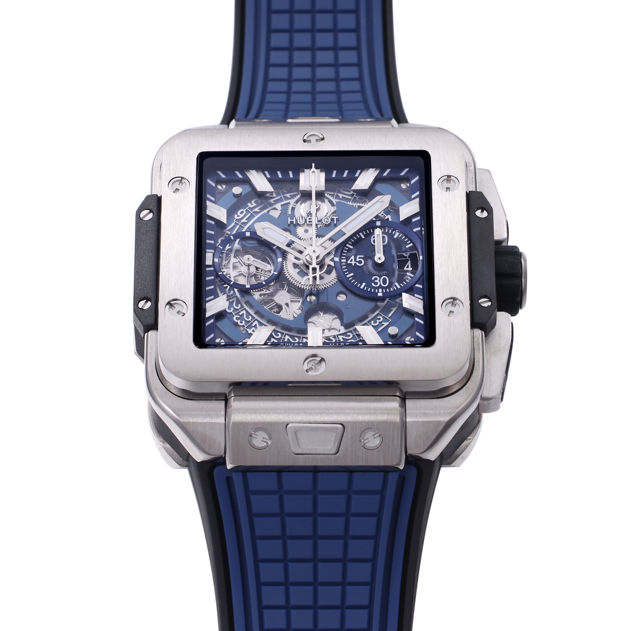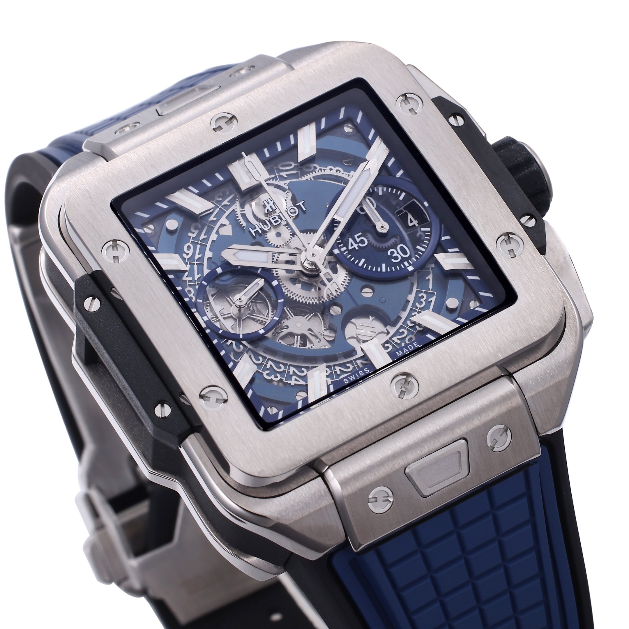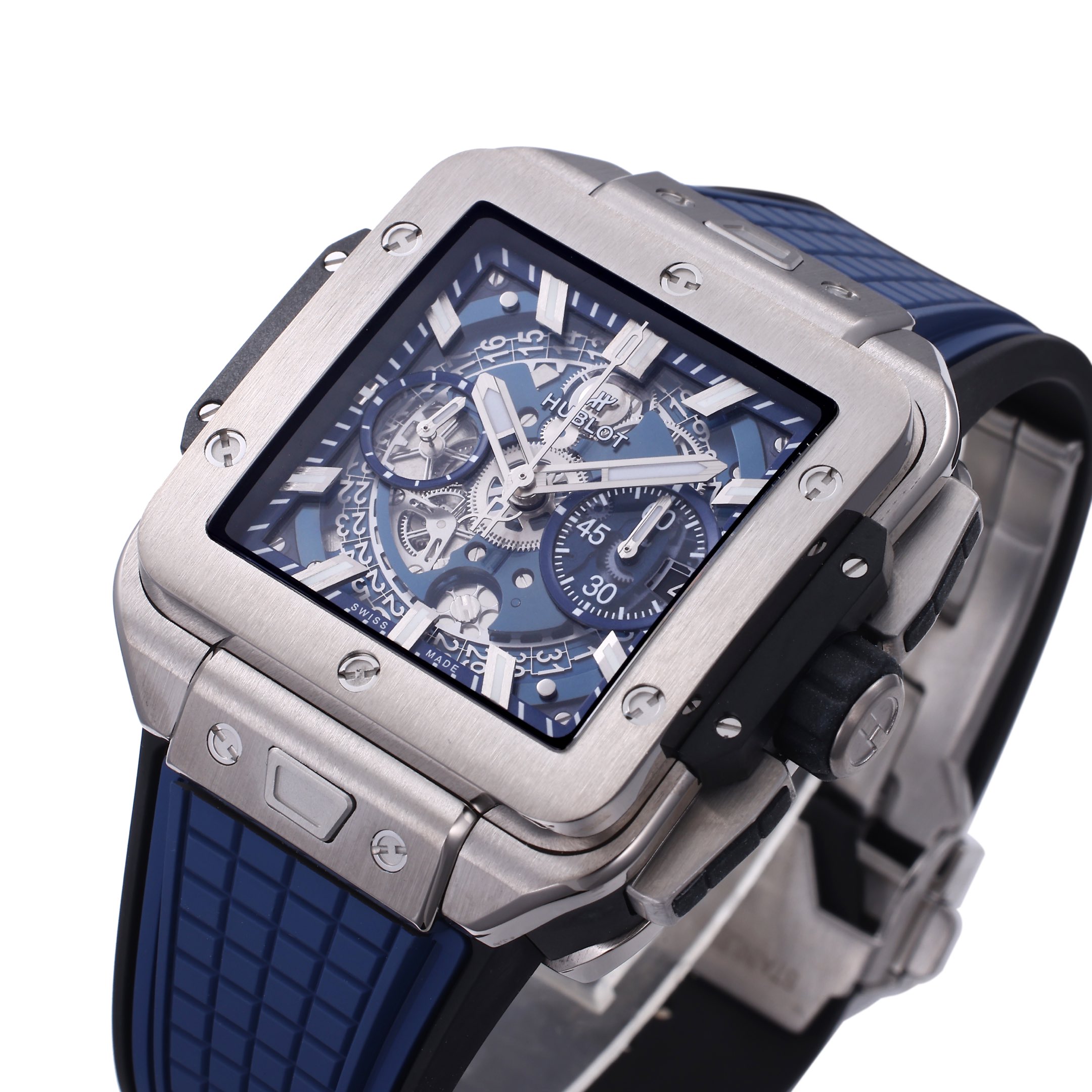 Hublot Square Bang Unico 42mm Grey Dial Steel Bezel Blue Rubber Strap 821.NX.5170.RX