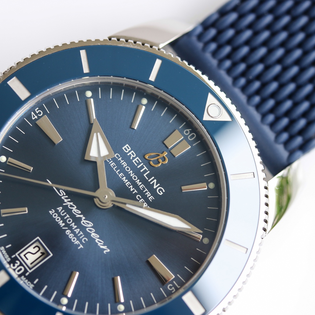 Breitling SuperOcean Héritage 42mm Blue Dial Blue Steel Bezel Blue Rubber Strap AB2010161C1S1