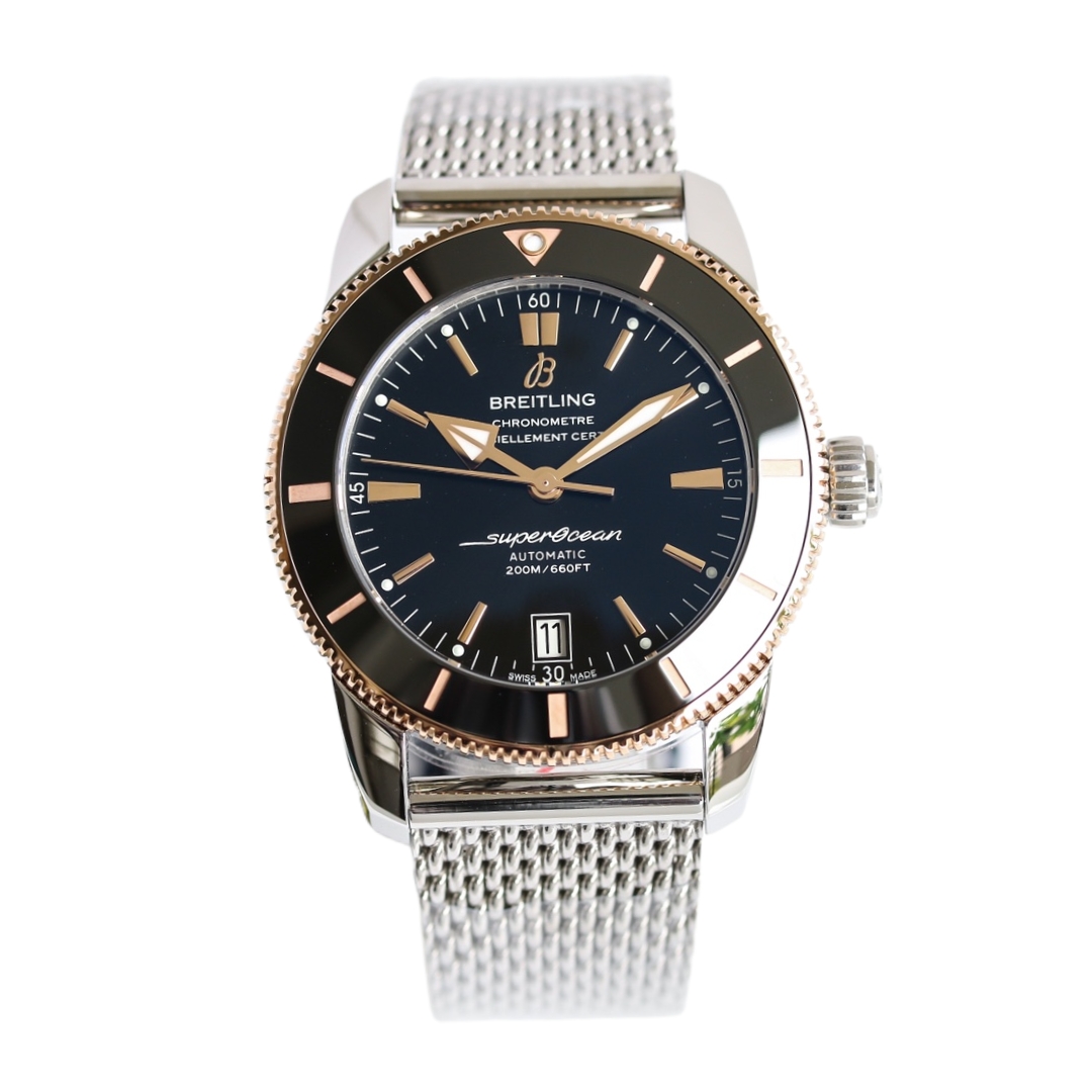 Breitling SuperOcean Héritage 42mm Black Dial Black Rose Gold Bezel Steel Strap UB2010121B1A1