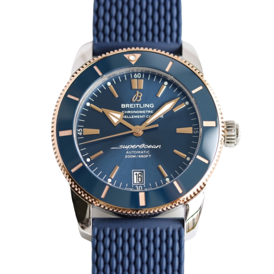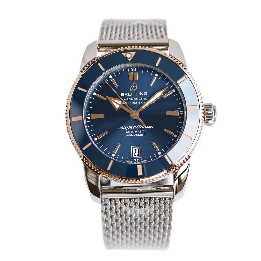 Breitling SuperOcean Héritage 42mm Blue Dial Blue Rose Gold Bezel Steel Strap UB2010161C1A1