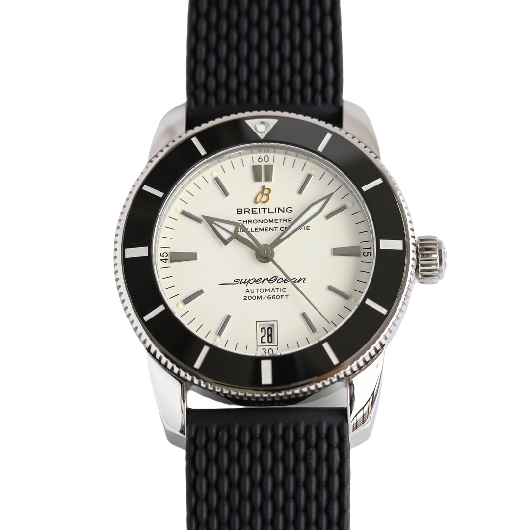 Breitling SuperOcean Héritage 42mm White Dial Black Steel Bezel Black Rubber Strap AB201012.G827.154X