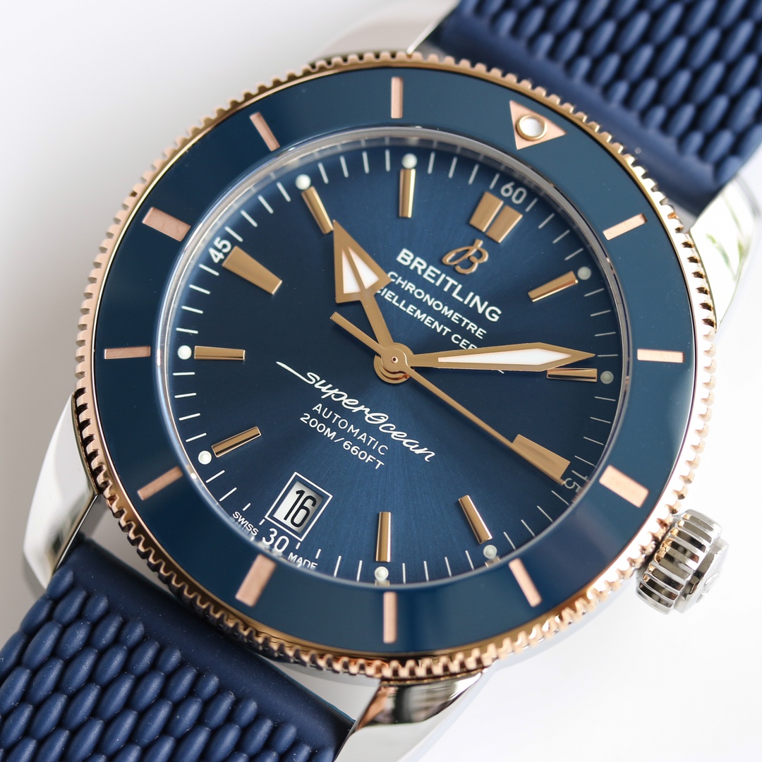 Breitling SuperOcean Héritage 42mm Blue Dial Blue Rose Gold Bezel Blue Rubber Strap UB2010161C1S1