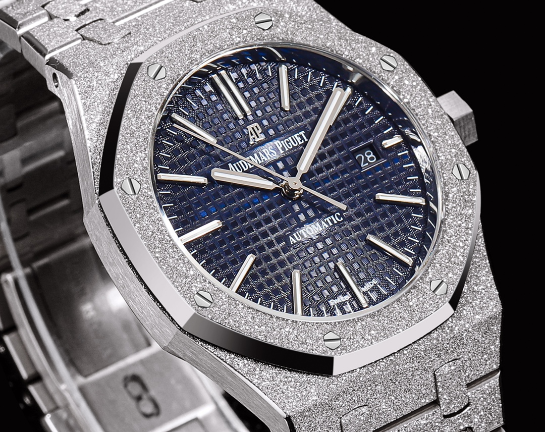 | Audemars Piguet Royal Oak 37mm Blue Dial Frost Platinum Bezel Strap 15454OR.GG.1259OR.01 | |