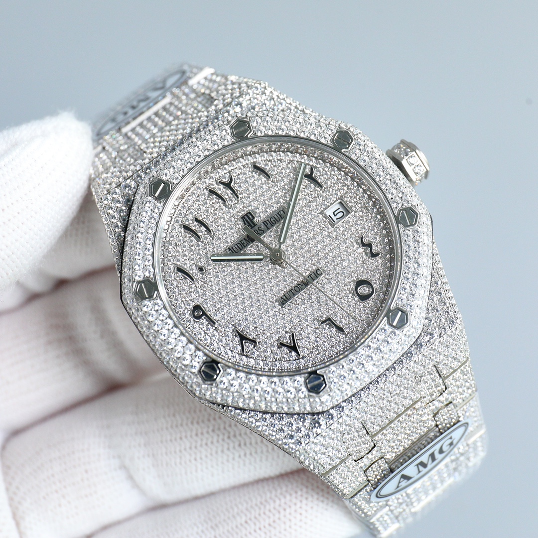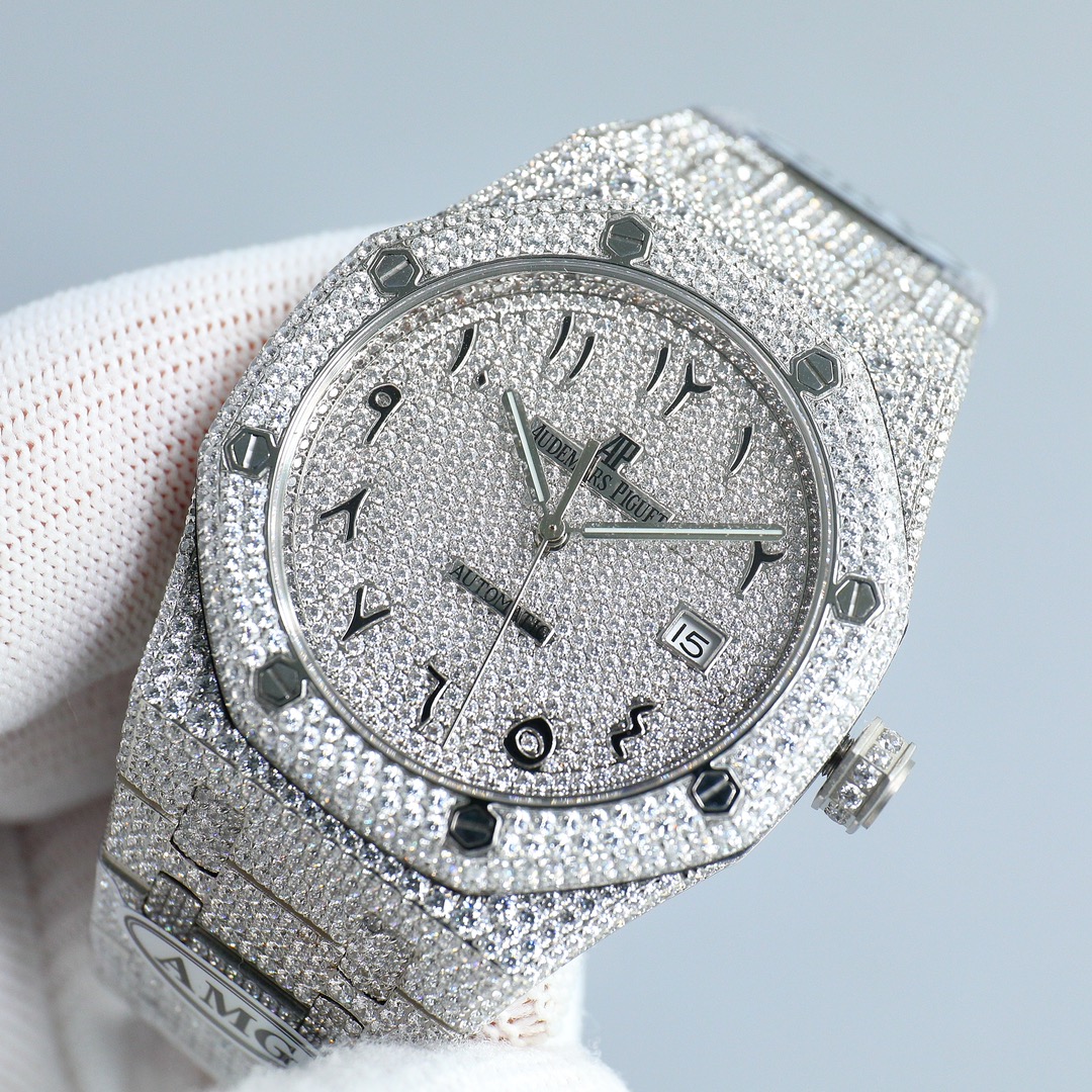 | Audemars Piguet Royal Oak 41mm Full Diamond Dial Platinum Arabic 15400 | |
