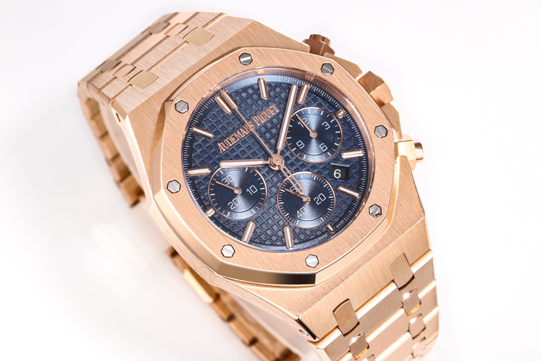| Audemars Piguet Royal Oak Chronograph 41mm Blue Dial Rose Gold Bezel 26240OR.OO.1320OR.05 | |