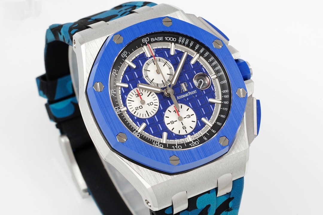 | Audemars Piguet Royal Oak Offshore Chronograph 44mm Blue Dial Blue Bezel Camouflage Rubber 26400SO.OO.A335CA.01 | |