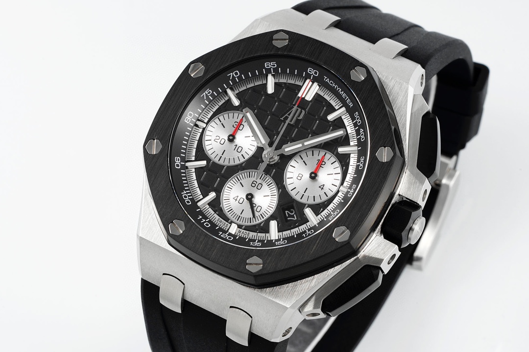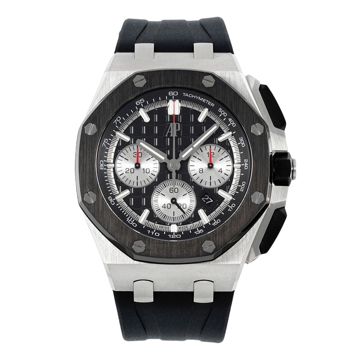 | Audemars Piguet Royale Oak Offshore Chronograph 43mm Black Silver Dial Black Steel Bezel Black Rubber 26420SO.OO.A002CA.01 | |