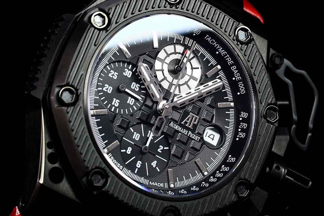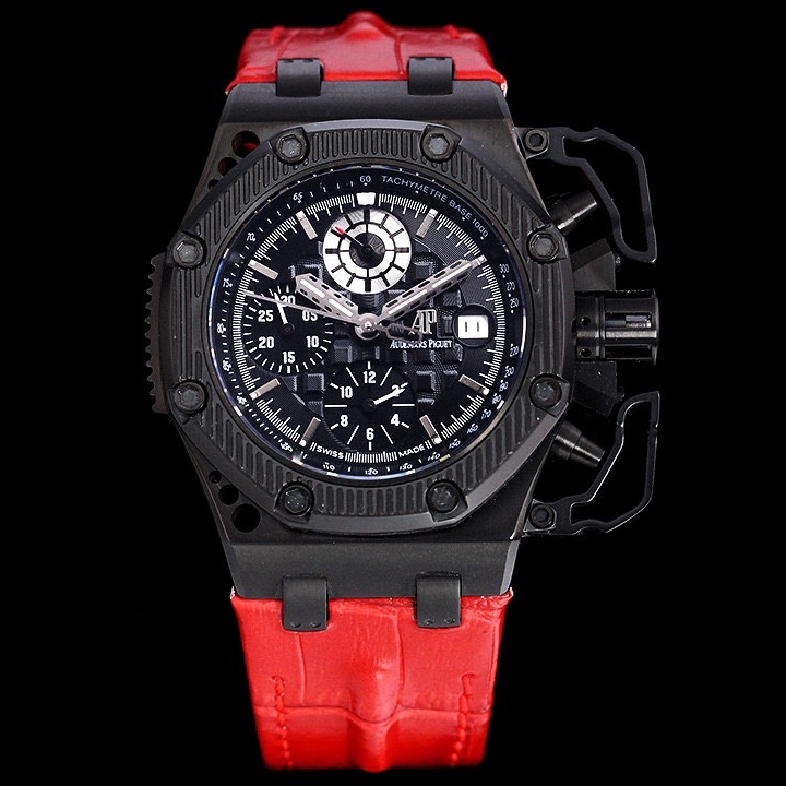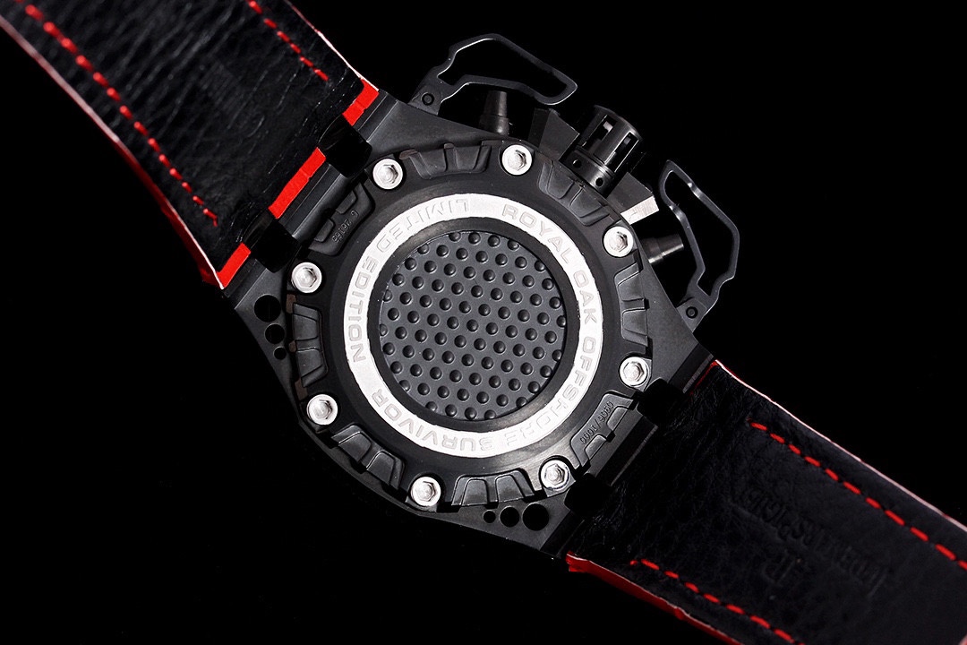 • Audemars Piguet Royale Oak Offshore Survivor 42mm Black Dial Black Ceramic Bezel Red Leather 26165