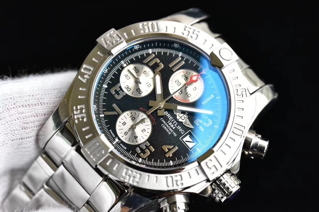 • Breitling Avenger II 43mm Black Dial Steel Bezel Steel Strap A13381111B2A1