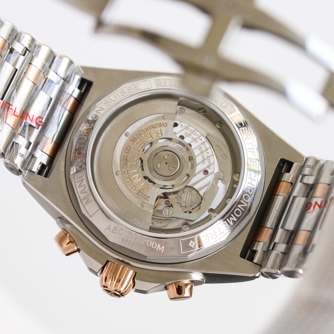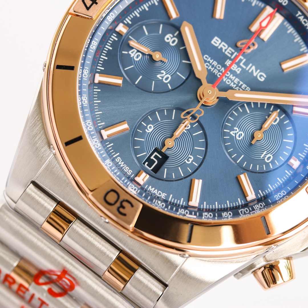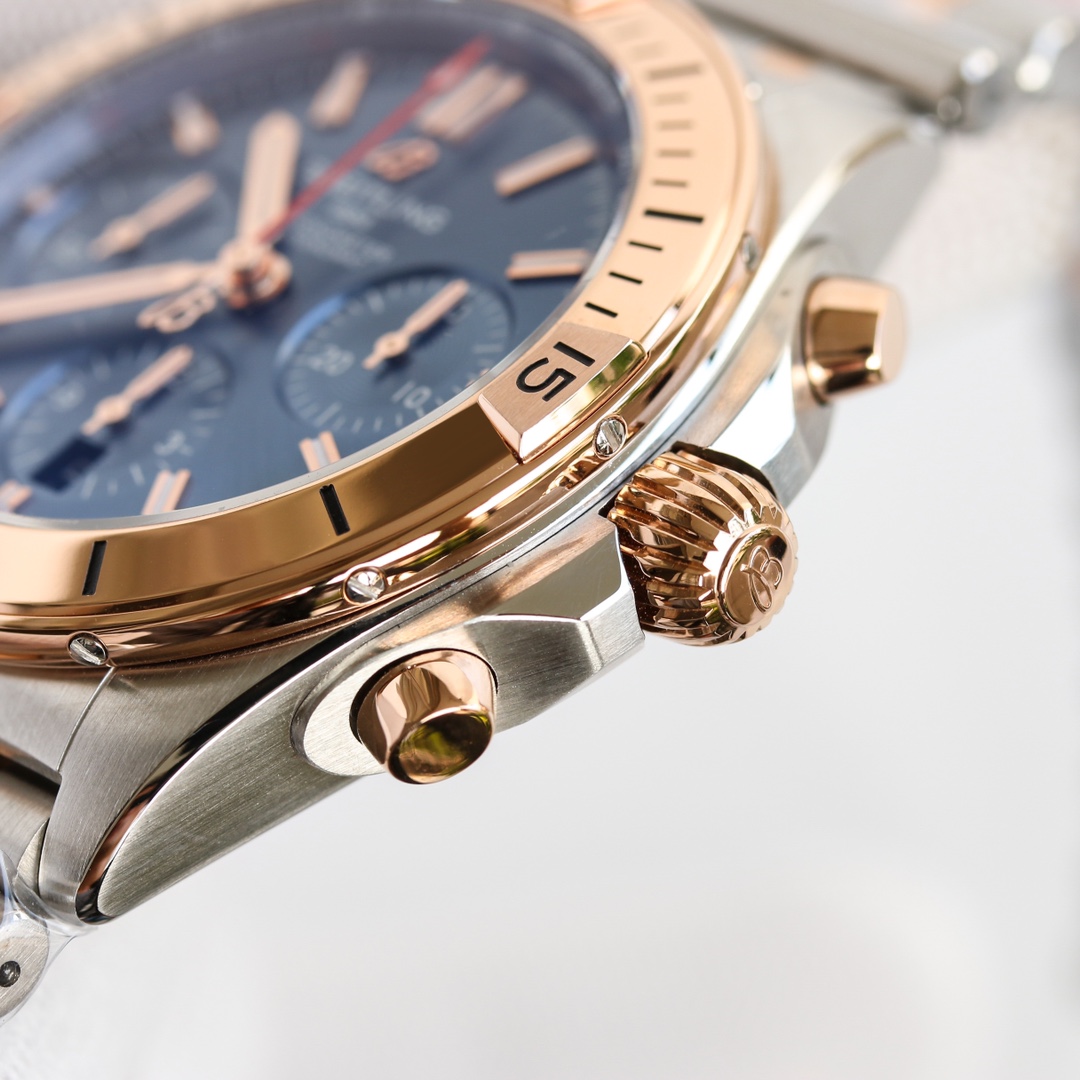 • Breitling Chronomat 42mm Blue Dial Rose Gold Bezel Steel Strap UB0134101C1U1
