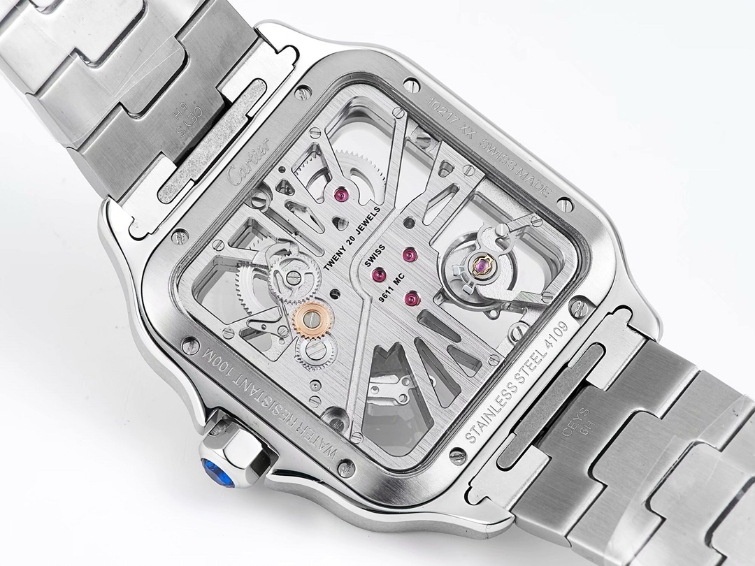 | Cartier Santos 39.8mm Hollow Dial Steel Bezel Strap WHSA0015 | |