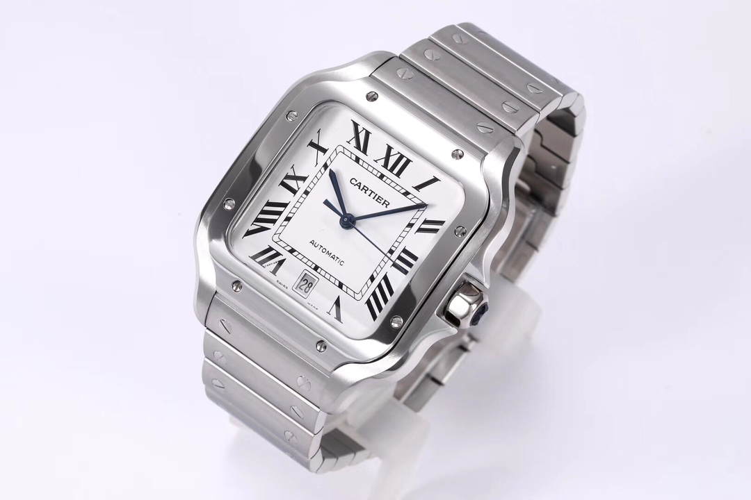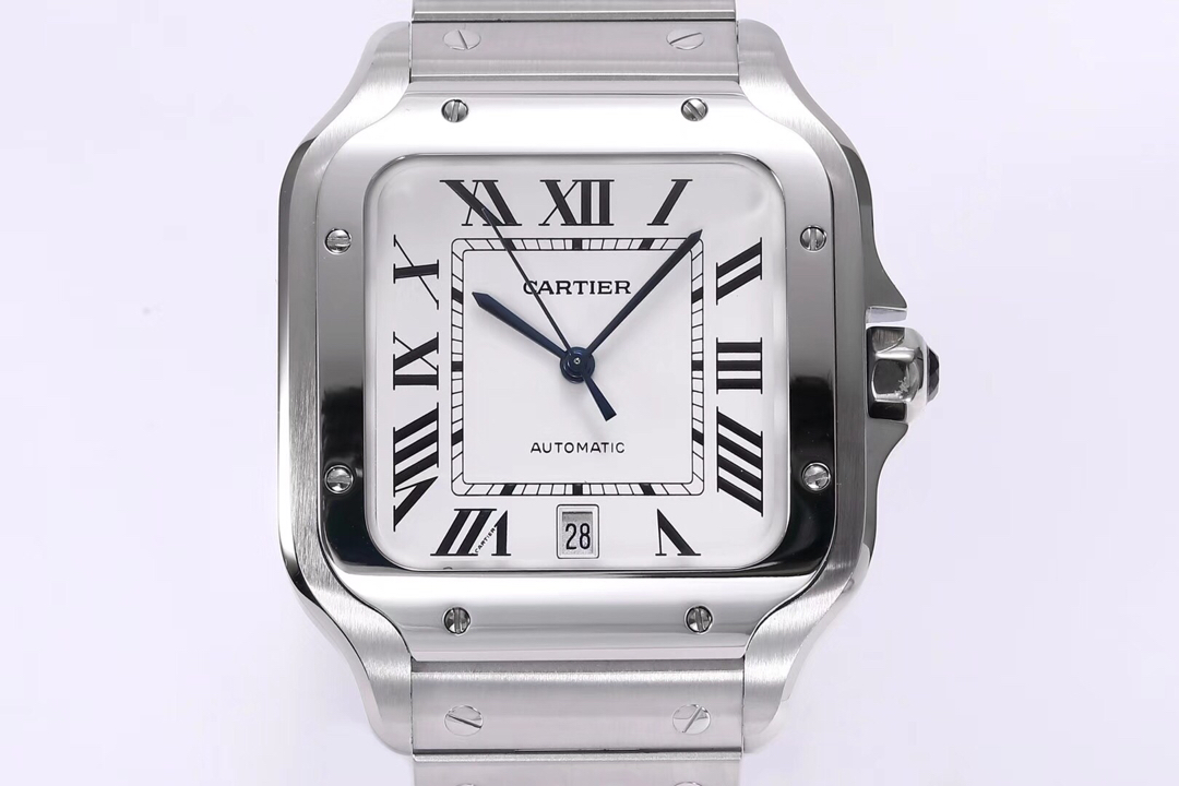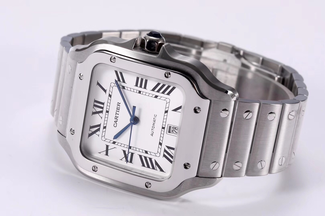 | Cartier Santos 39.8mm White Dial Steel Bezel Strap WSSA0018 | |