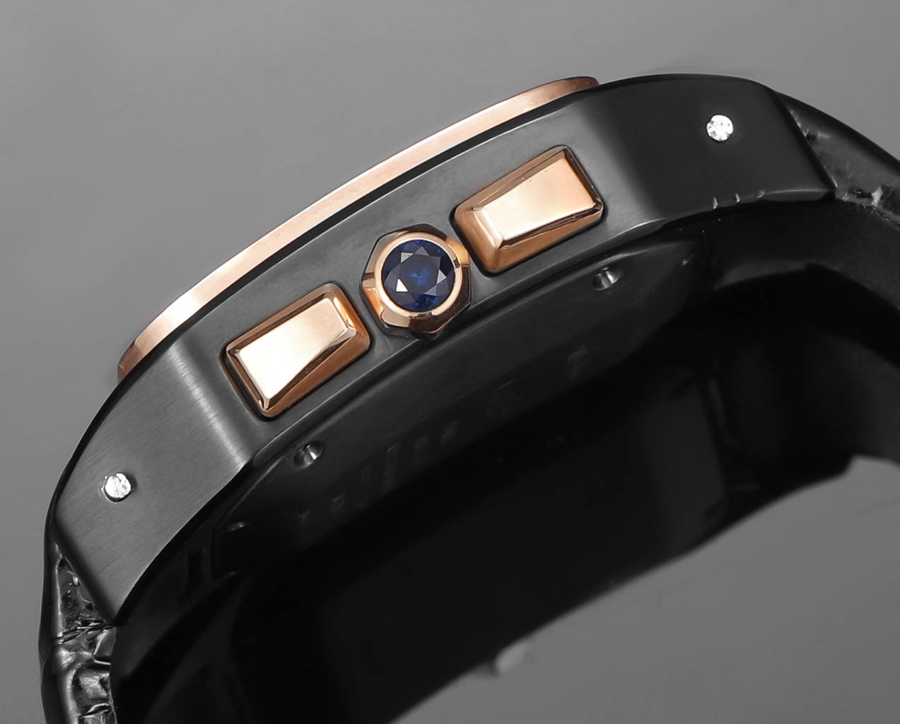 | Cartier Santos 42mm Black Rose Gold Dial Rose Gold Black Bezel Black Leather Strap W2020004 | |