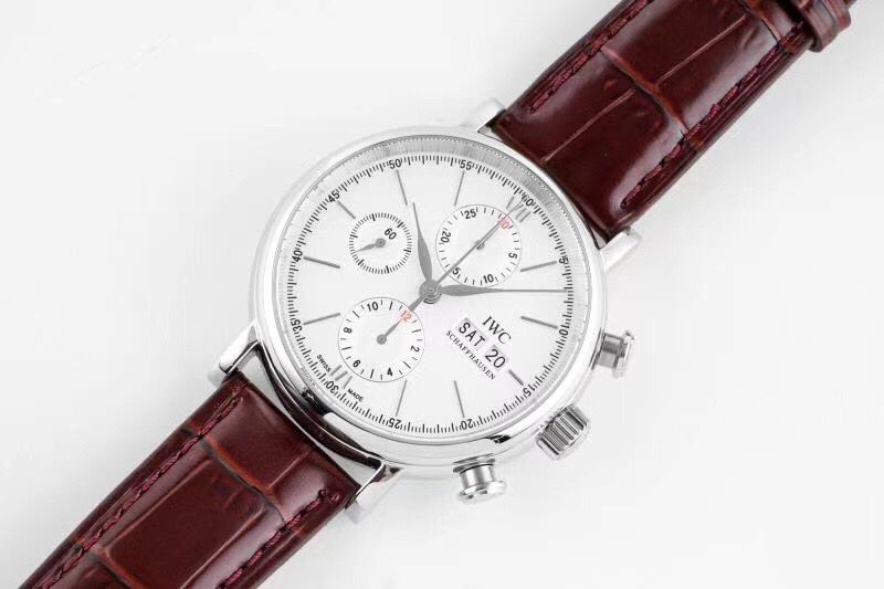 • IWC Portofino 42mm White Dial Steel Bezel Brown Leather Strap IW391007