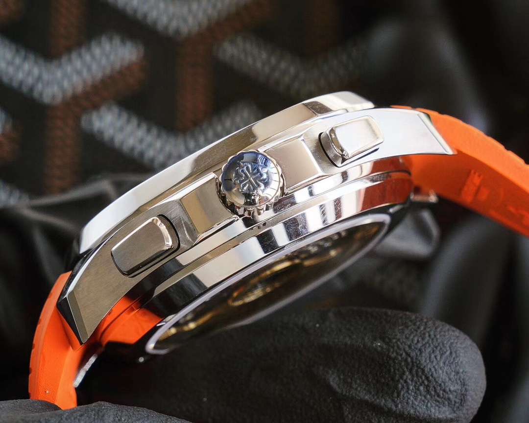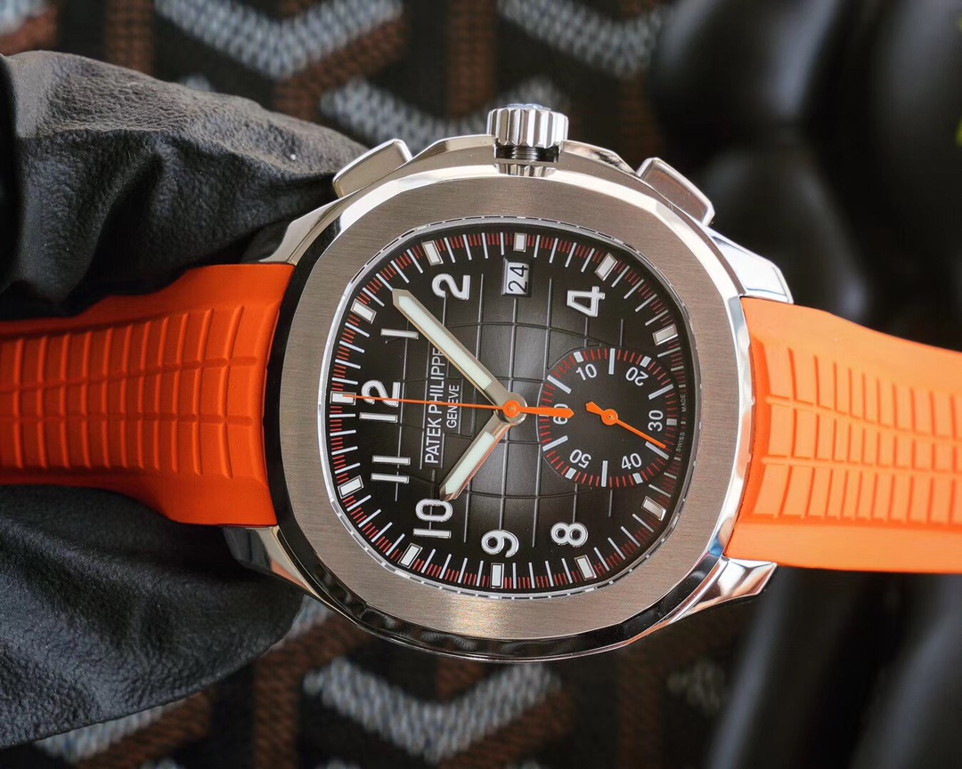 • Patek Philippe Aquanaut 42.2mm Black Dial Seetl Bezel Orange Rubber Strap 5968A-001