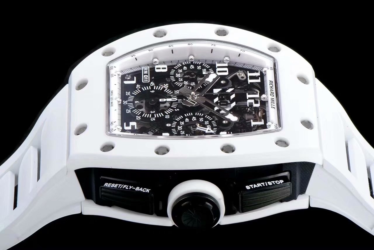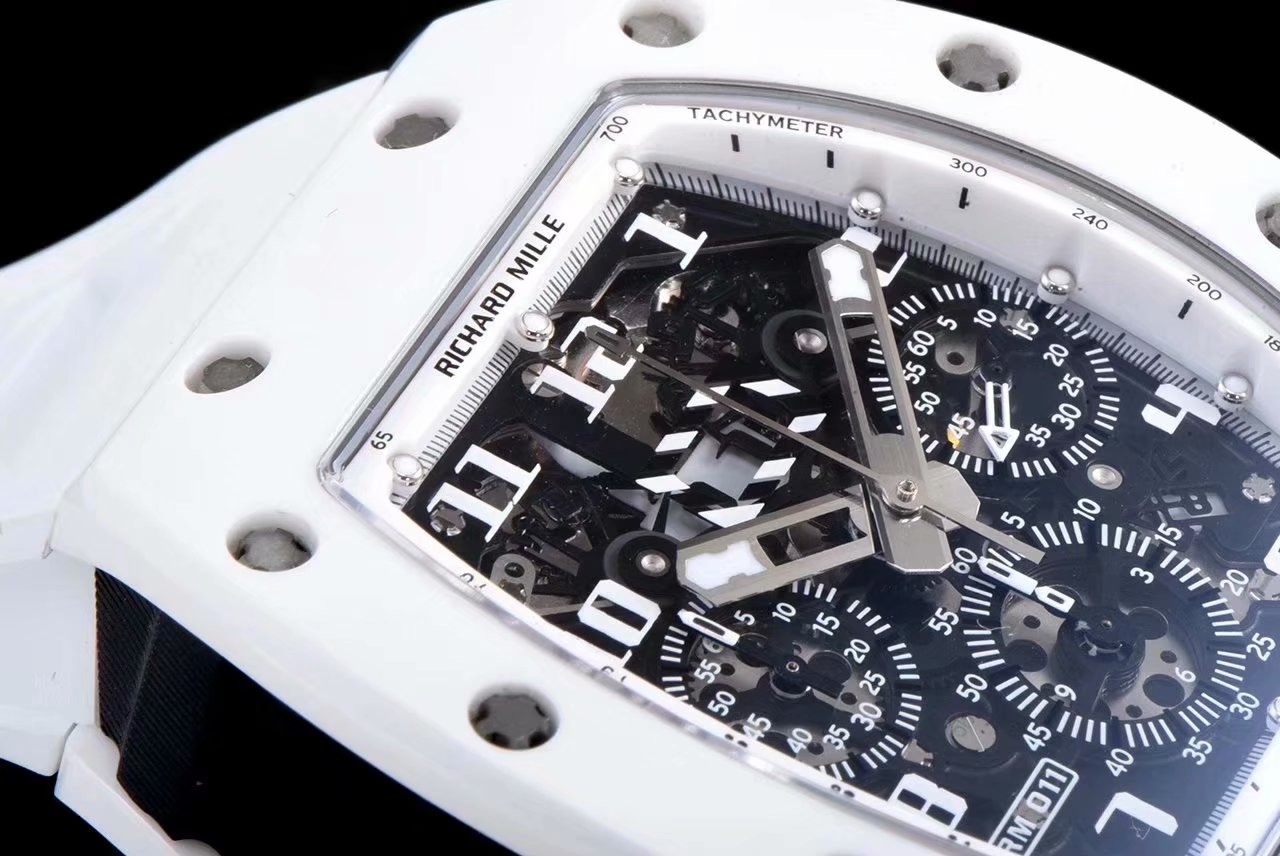 | Richard Mille RM 011 50mm X 40mm Black Dial White Ceramics Bezel White Rubber Strap | |