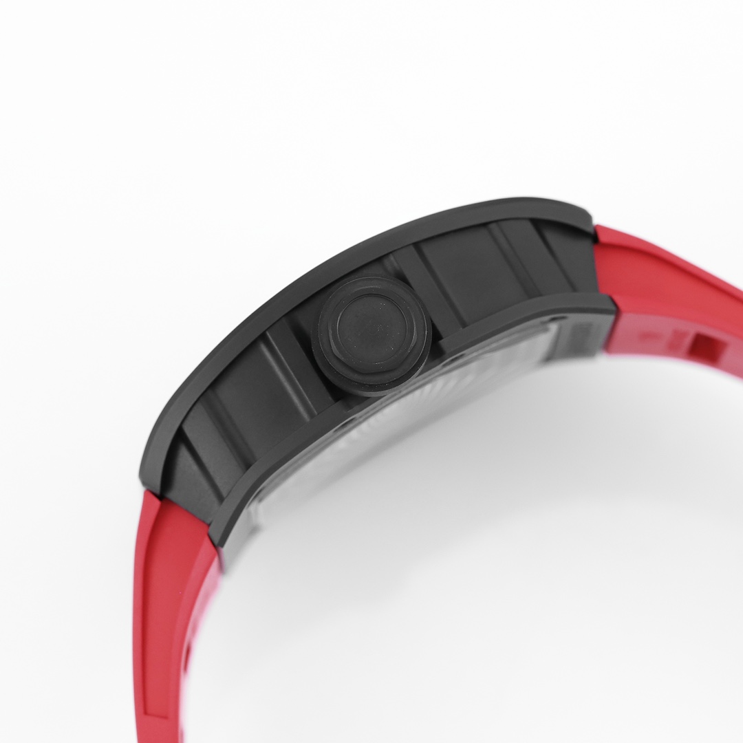| Richard Mille RM 055 49.90mm x 42.70mm Grey Hollow Dial Red Black Carbon Fiber Bezel Red Rubber Strap | |