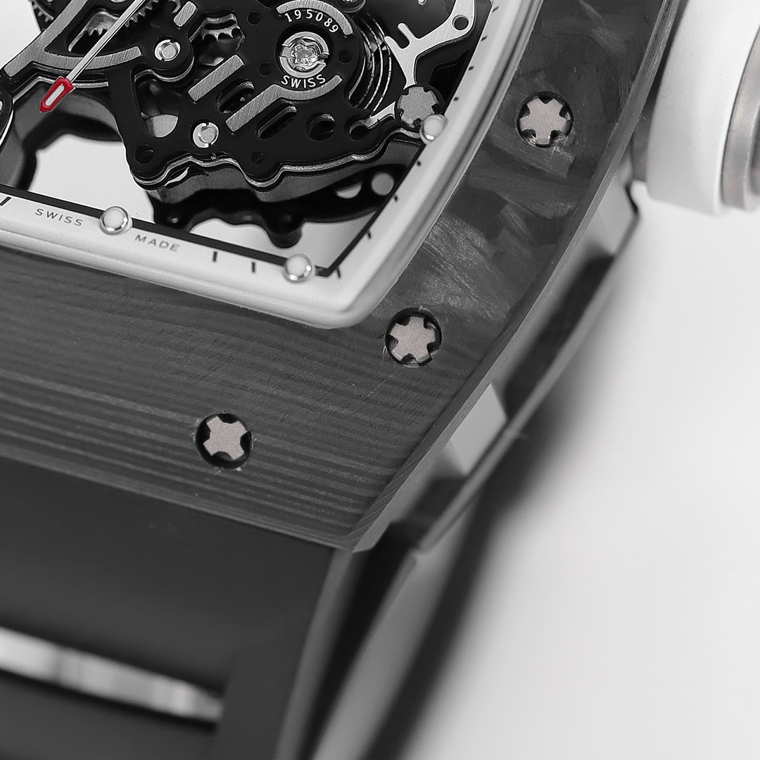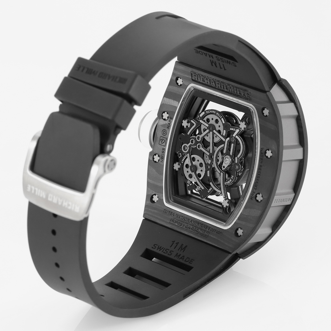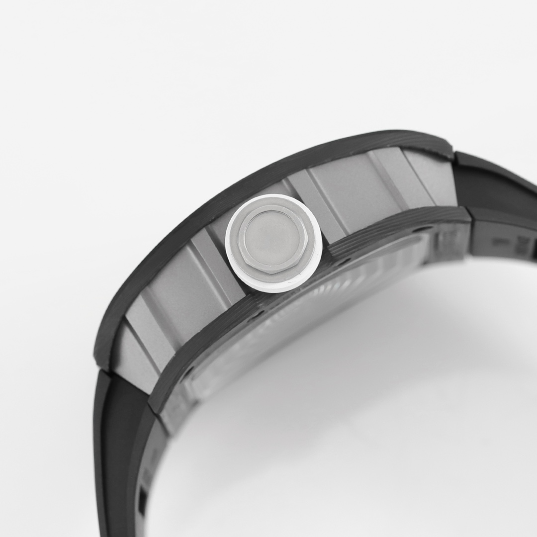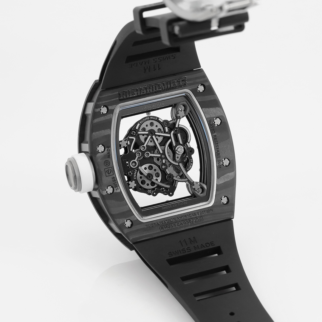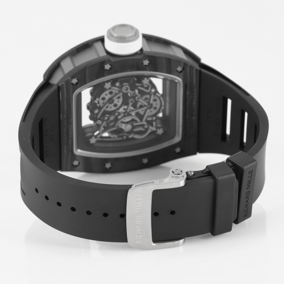 | Richard Mille RM 055 49.90mm x 42.70mm Grey Hollow Dial White Black Carbon Fiber Bezel Black Rubber Strap | |
