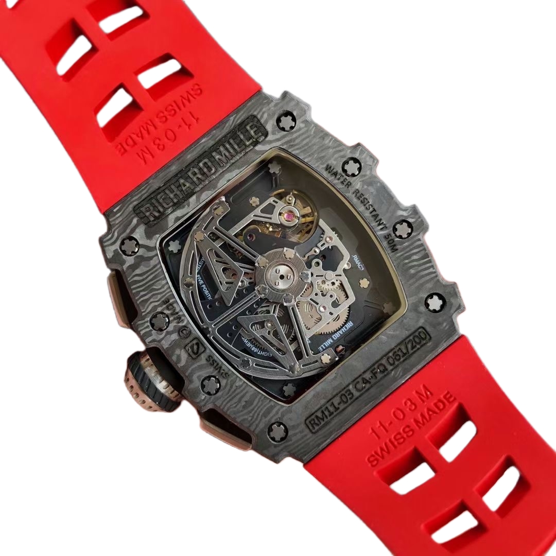 | Richard Mille RM 11-03 49.94mm x 44.50mm Dial Black Carbon Fiber Bezel Red Rubber Strap | |