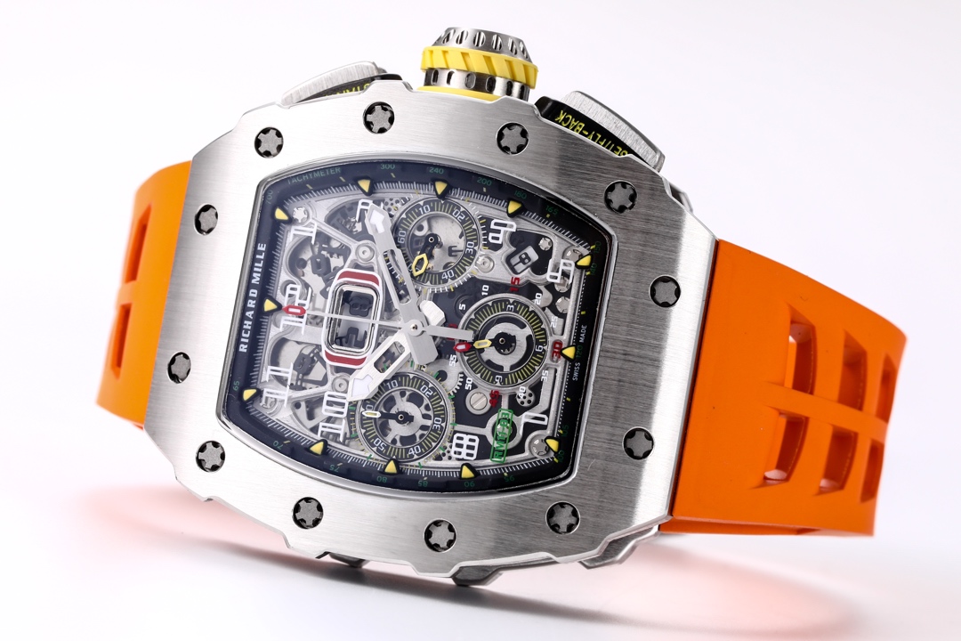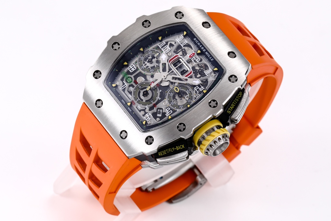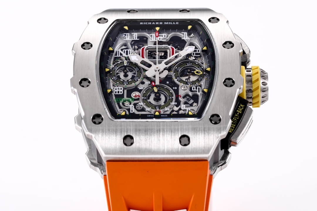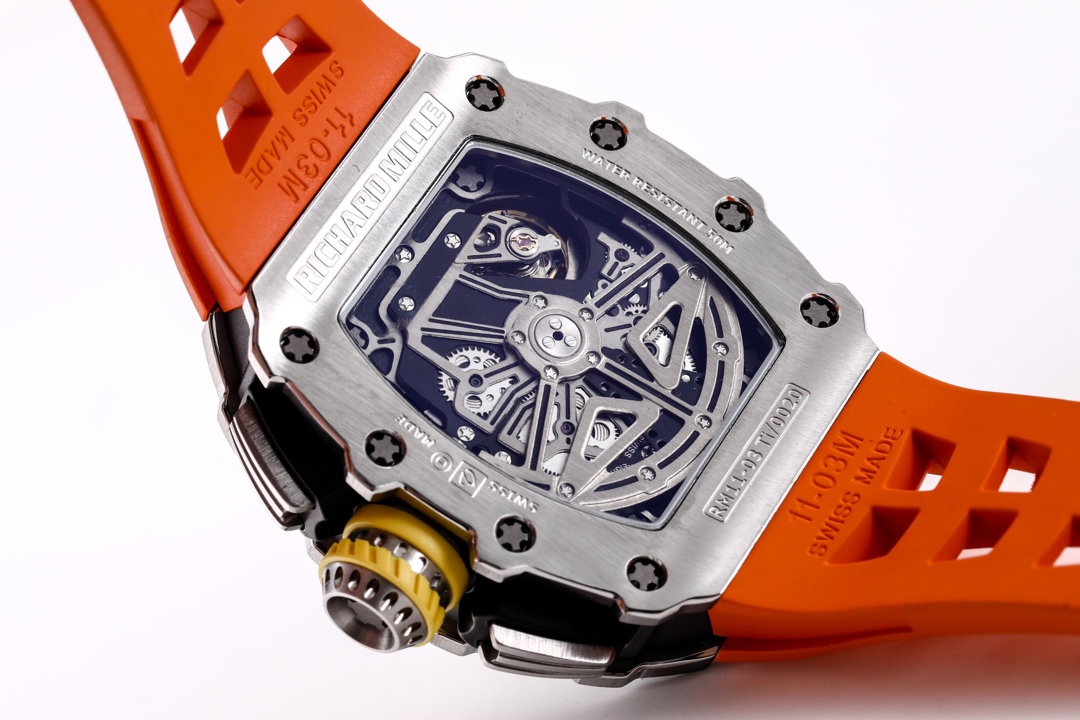 | Richard Mille RM 11-03 49.94mm x 44.50mm Dial Titanium Steel Bezel Orange Rubber Strap | |