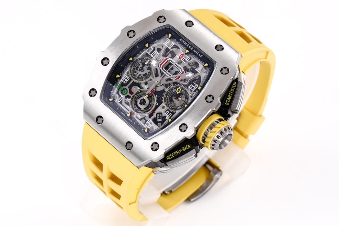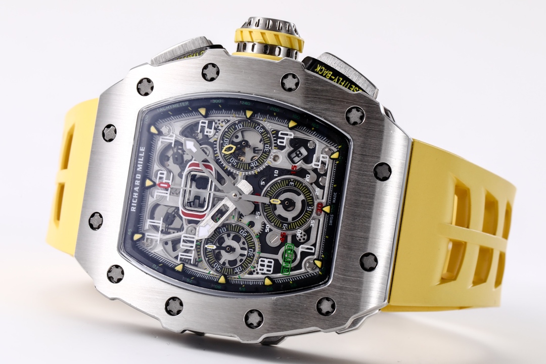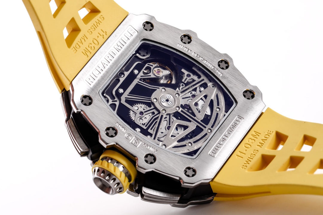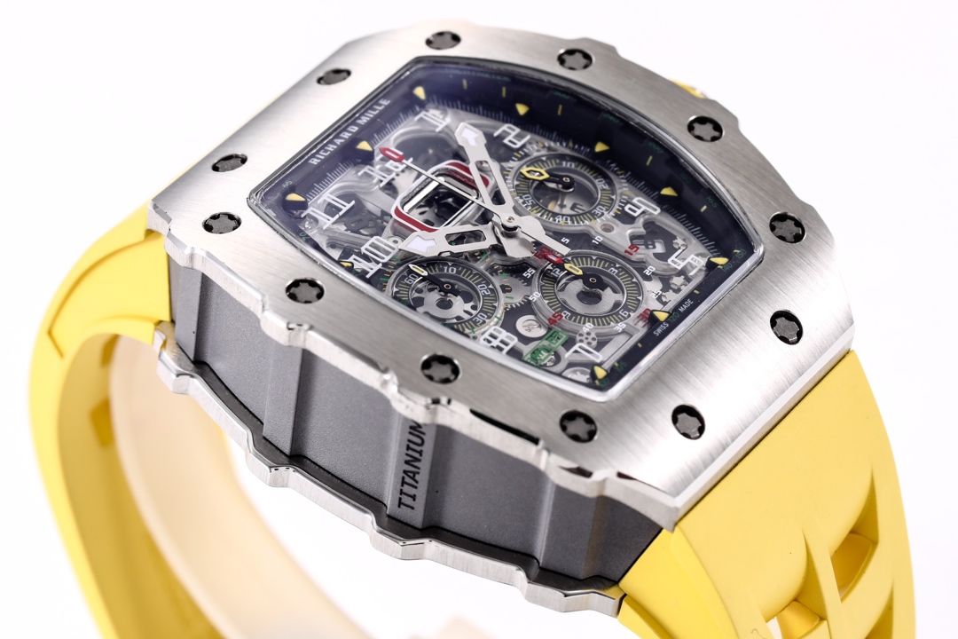 Richard Mille RM 11-03 49.94mm x 44.50mm Dial Titanium Steel Bezel Yellow Rubber Strap