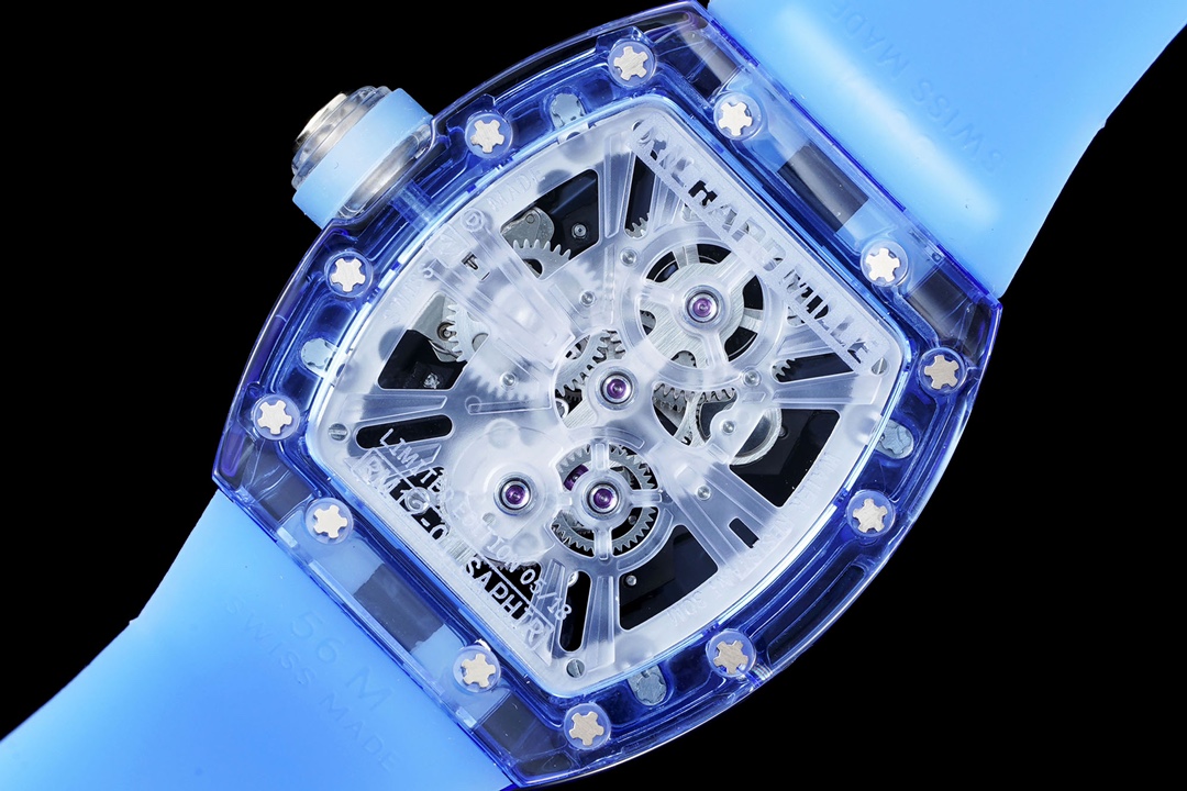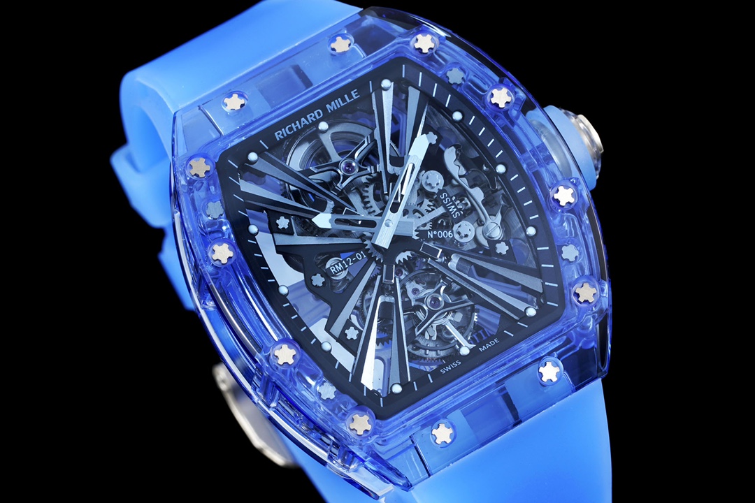 Richard Mille RM 12-01 44.50mm x 49.94mm Hollow Dial Blue Transparent Bezel Blue Rubber Strap