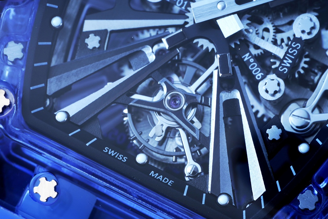 • Richard Mille RM 12-01 44.50mm x 49.94mm Hollow Dial Blue Transparent Bezel Blue Rubber Strap