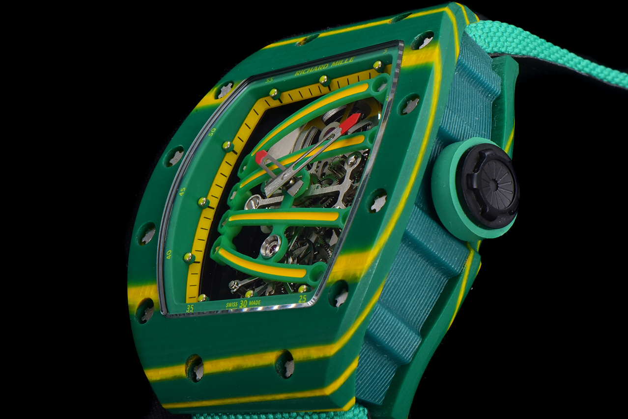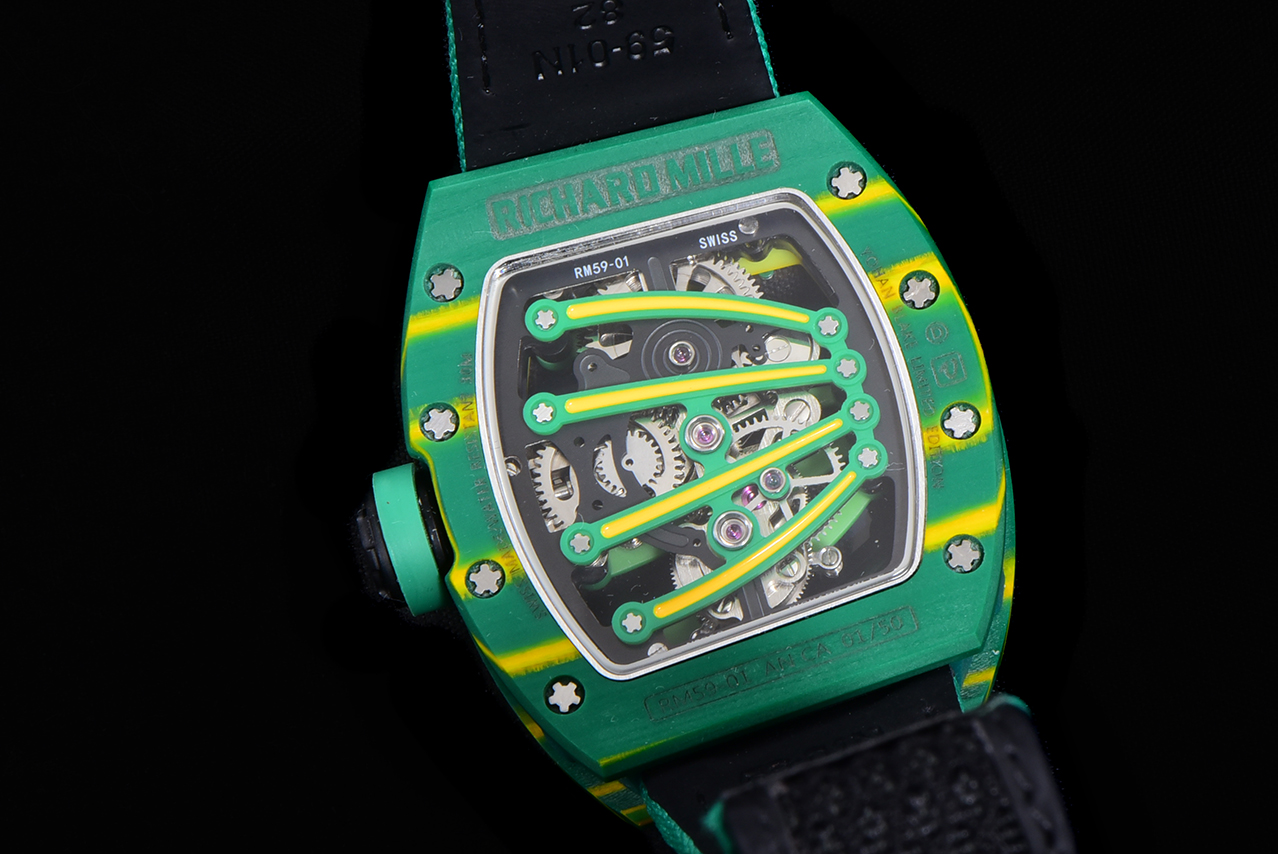 | Richard Mille RM 59-01 50.24mm X 42.70mm Green Yellow Dial Green Yellow Bezel Green Strap Tourbillon Yohan Blake | |
