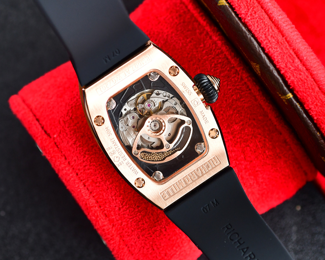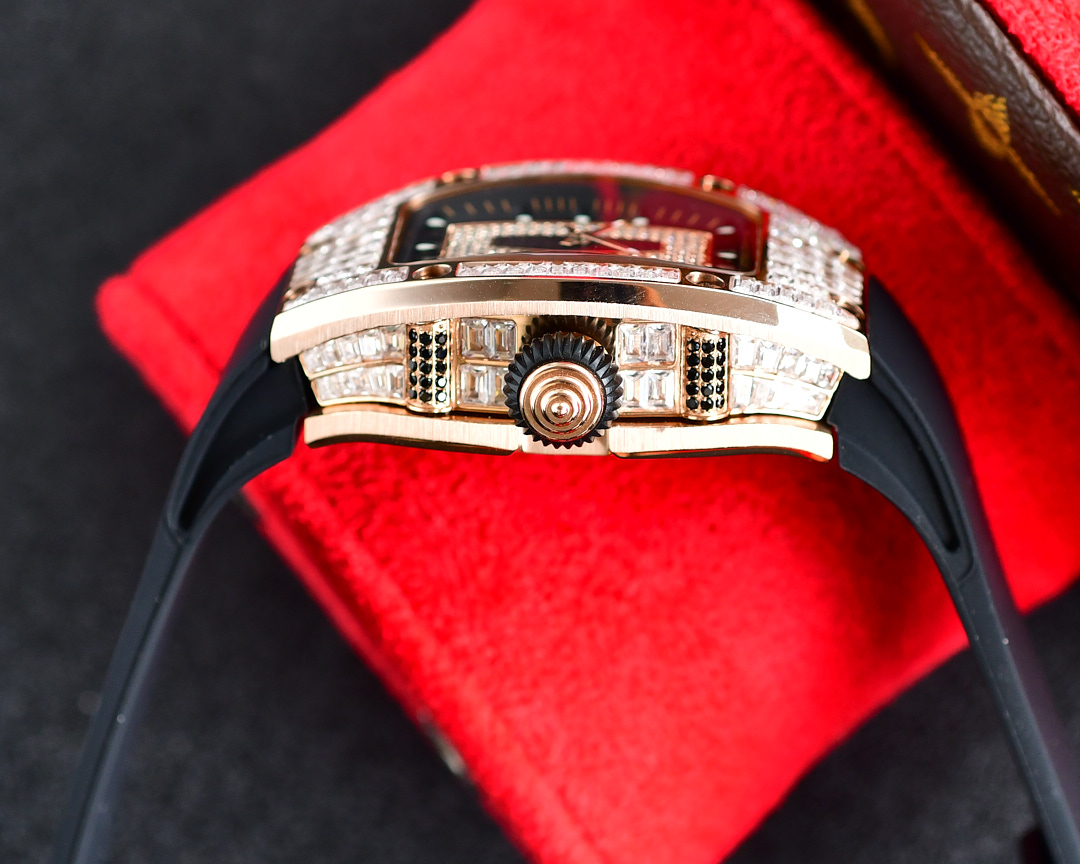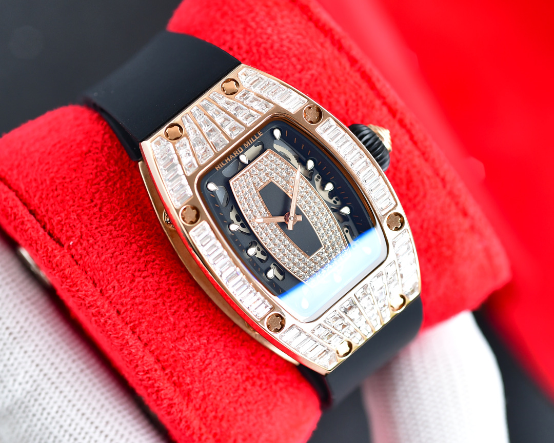 | Richard Mille RM07-01 45.66mm x 31.40mm Diamond Black Dial Rose Gold Square Diamond Bezel WhiteBlack Rubber Strap Ladies Woman | |