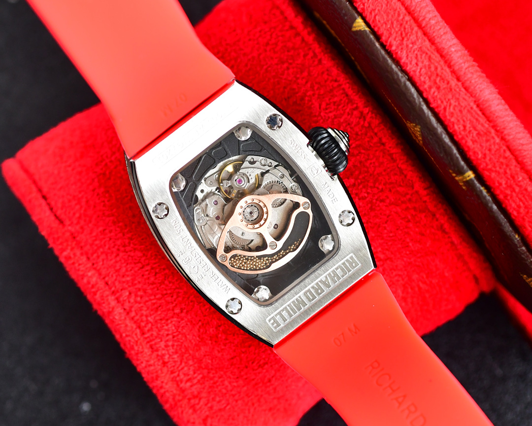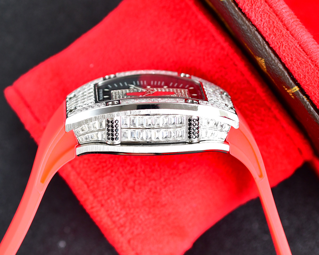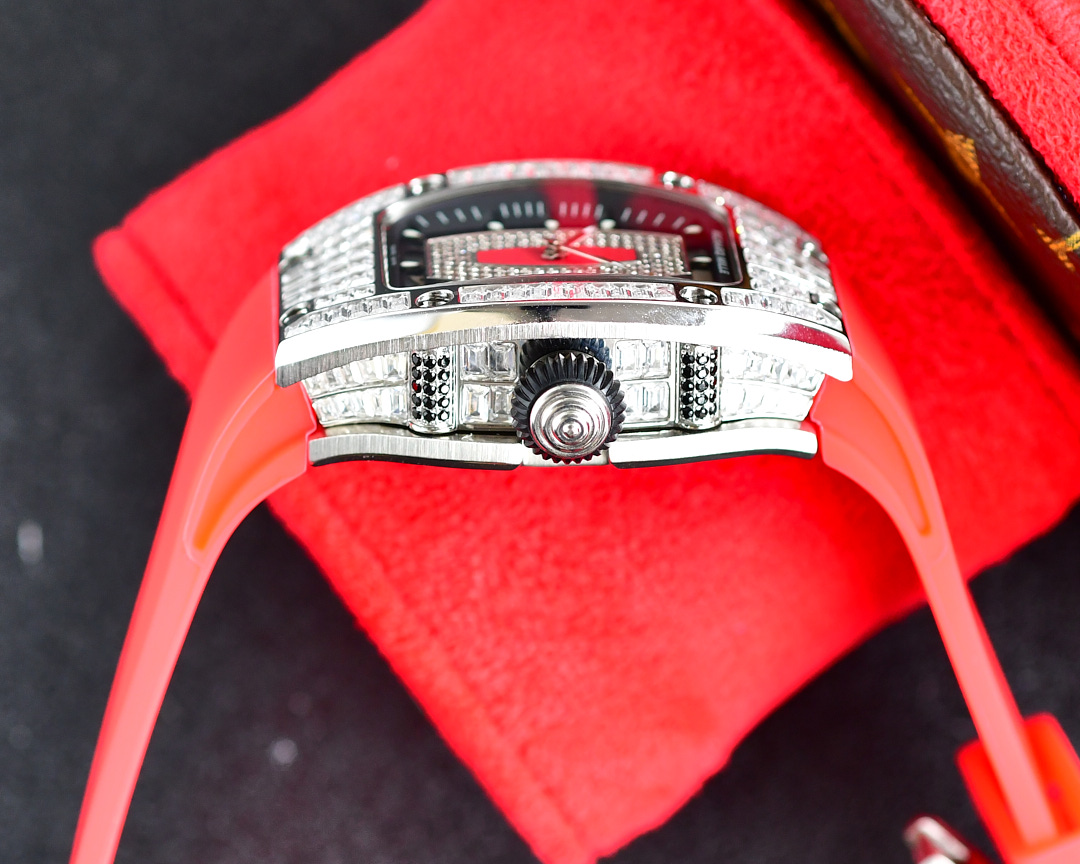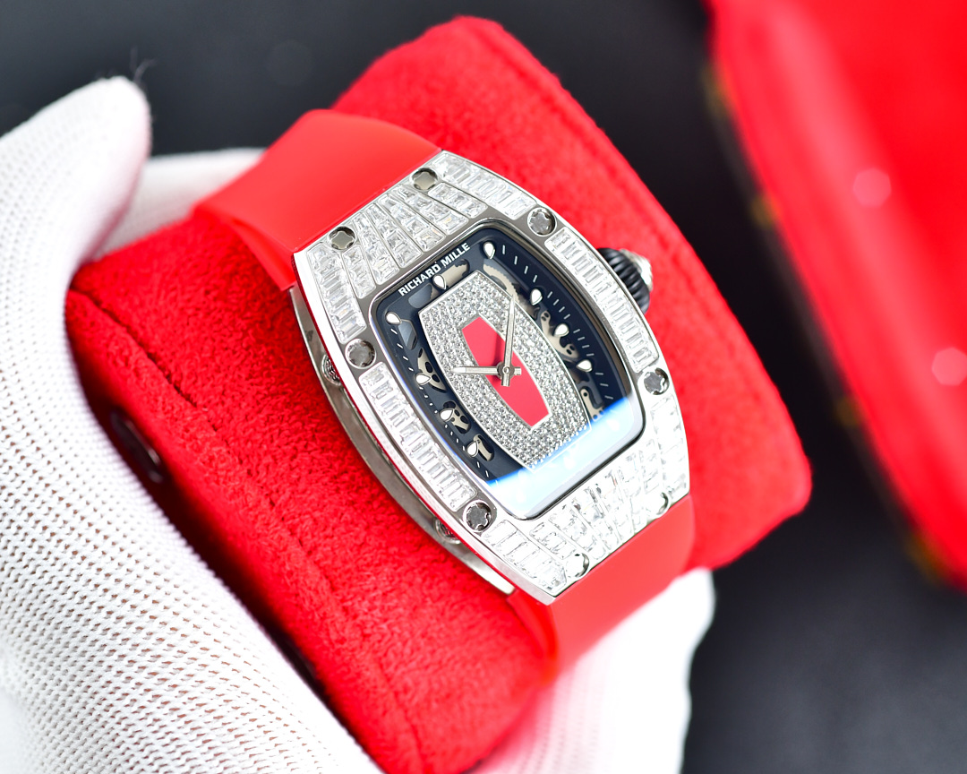 | Richard Mille RM07-01 45.66mm x 31.40mm Diamond Red Dial Platinum Square Diamond Bezel Red Rubber Strap Ladies Woman | |