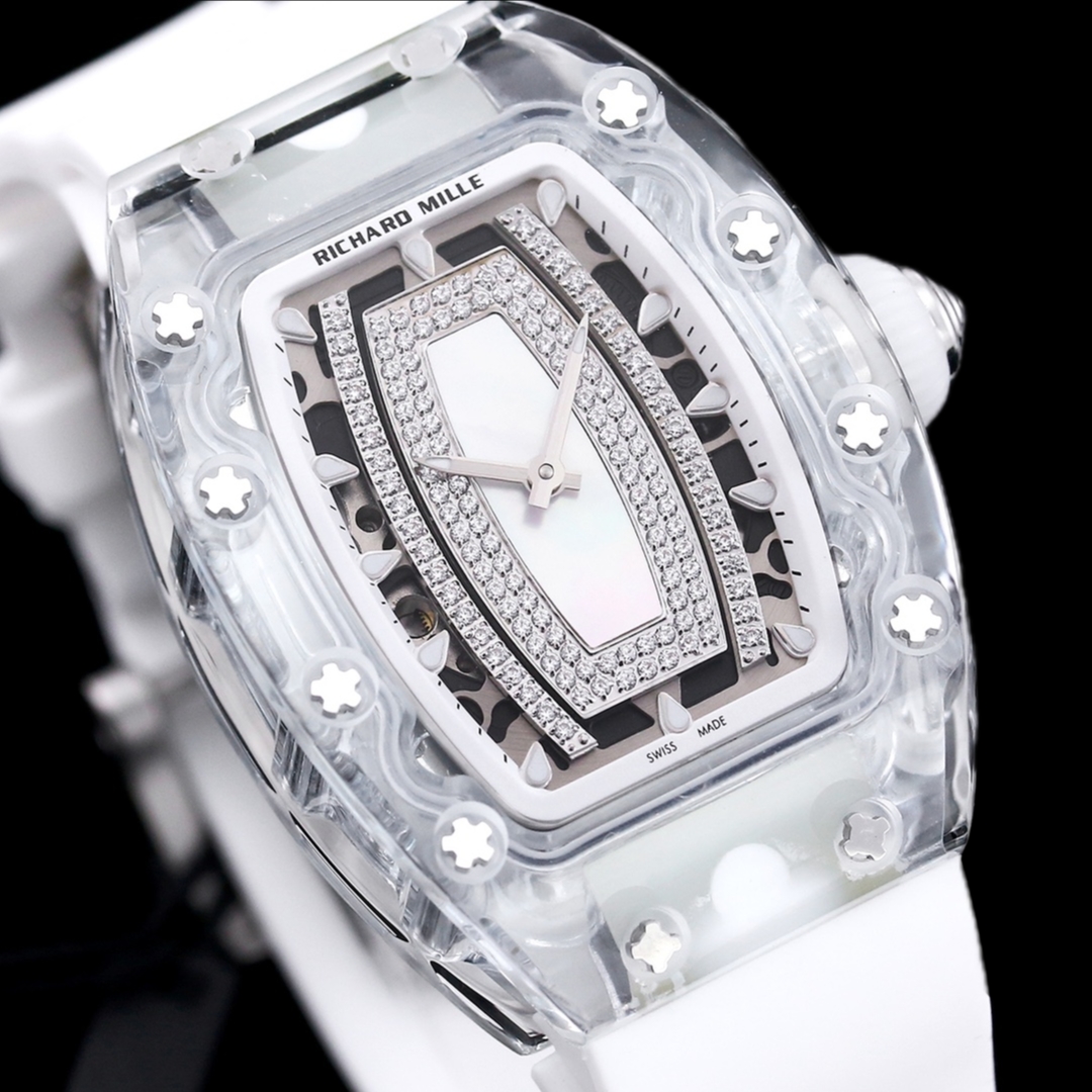 | Richard Mille RM07-02 45.66mm x 31.40mm Diamond Dial Transparent Bezel White Rubber Strap Ladies Woman | |