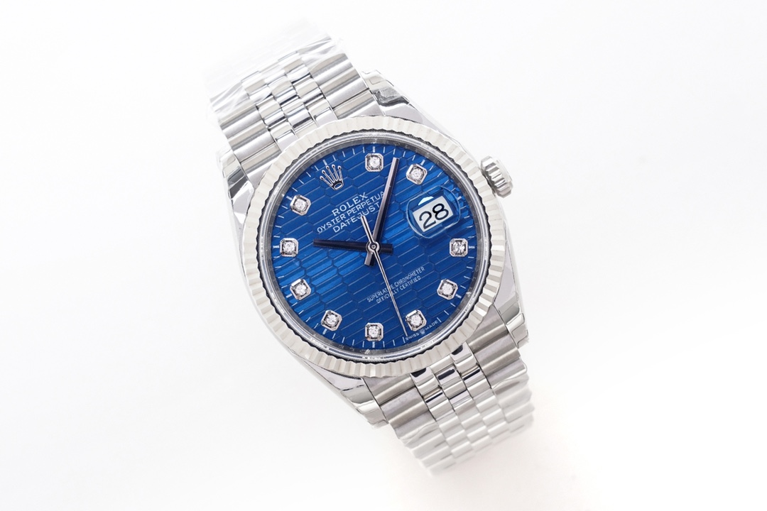 • Rolex Datejust 36mm Water Ripples Blue Diamond Dial Steel Bezel 126234-0057