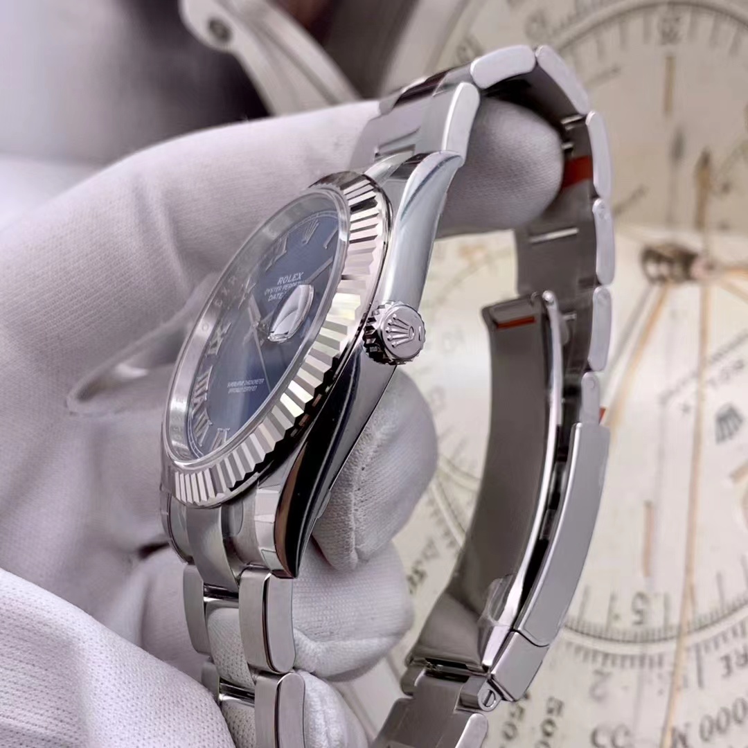 • Rolex Datejust 41mm Blue Dial Platinum Bezel Steel 126334-0025