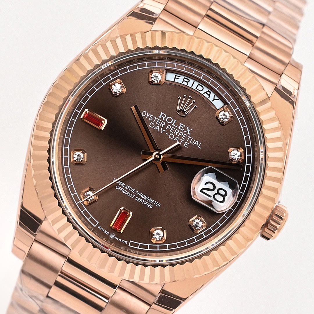 Rolex Day-Date 36mm 40mm Dial Chocolate Diamond Ruby Rose Gold 118235
