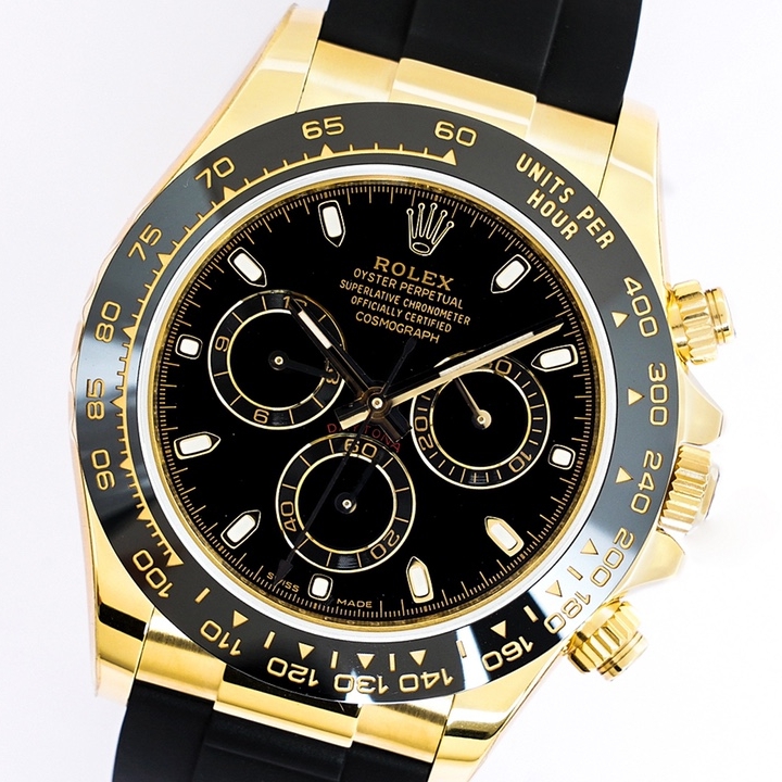• Rolex Daytona Cosmograph 40mm Dial Full Black Yellow Gold Black Strap 116518LN-0043