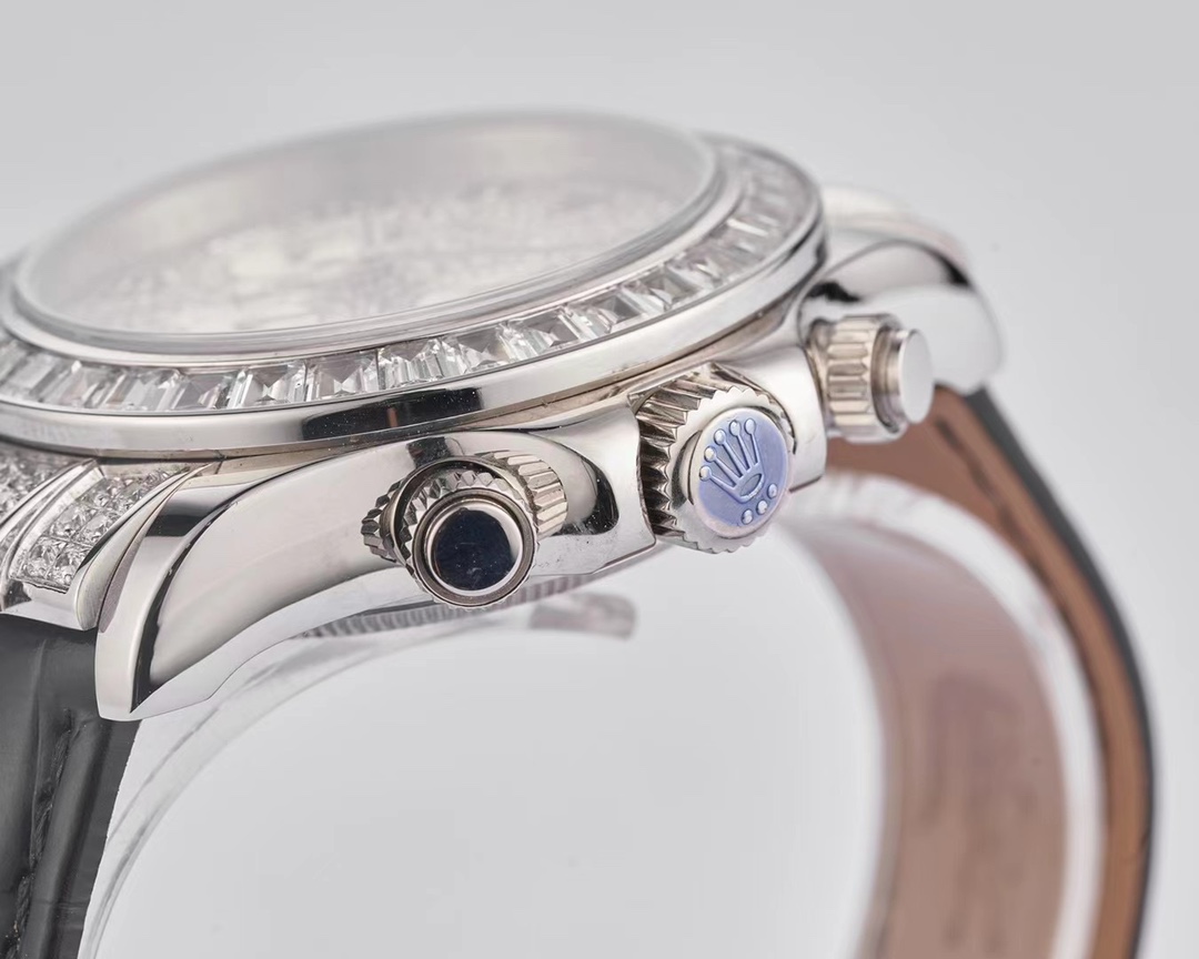 | Rolex Daytona Cosmograph 40mm Dial Full Diamond Gen Platinum Black Leather 116599TBR | |