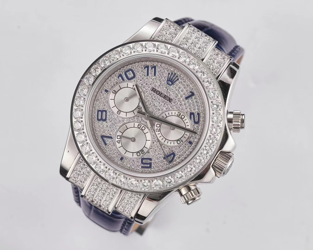 Rolex Daytona Cosmograph 40mm Dial Full Diamond Platinum Blue Leather 116599RBR